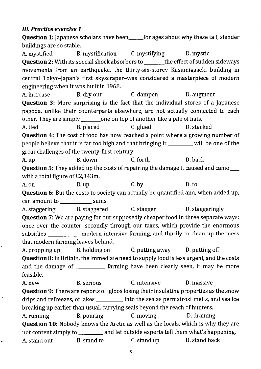 Tuyển tập 1800 câu trắc nghiệm từ vựng