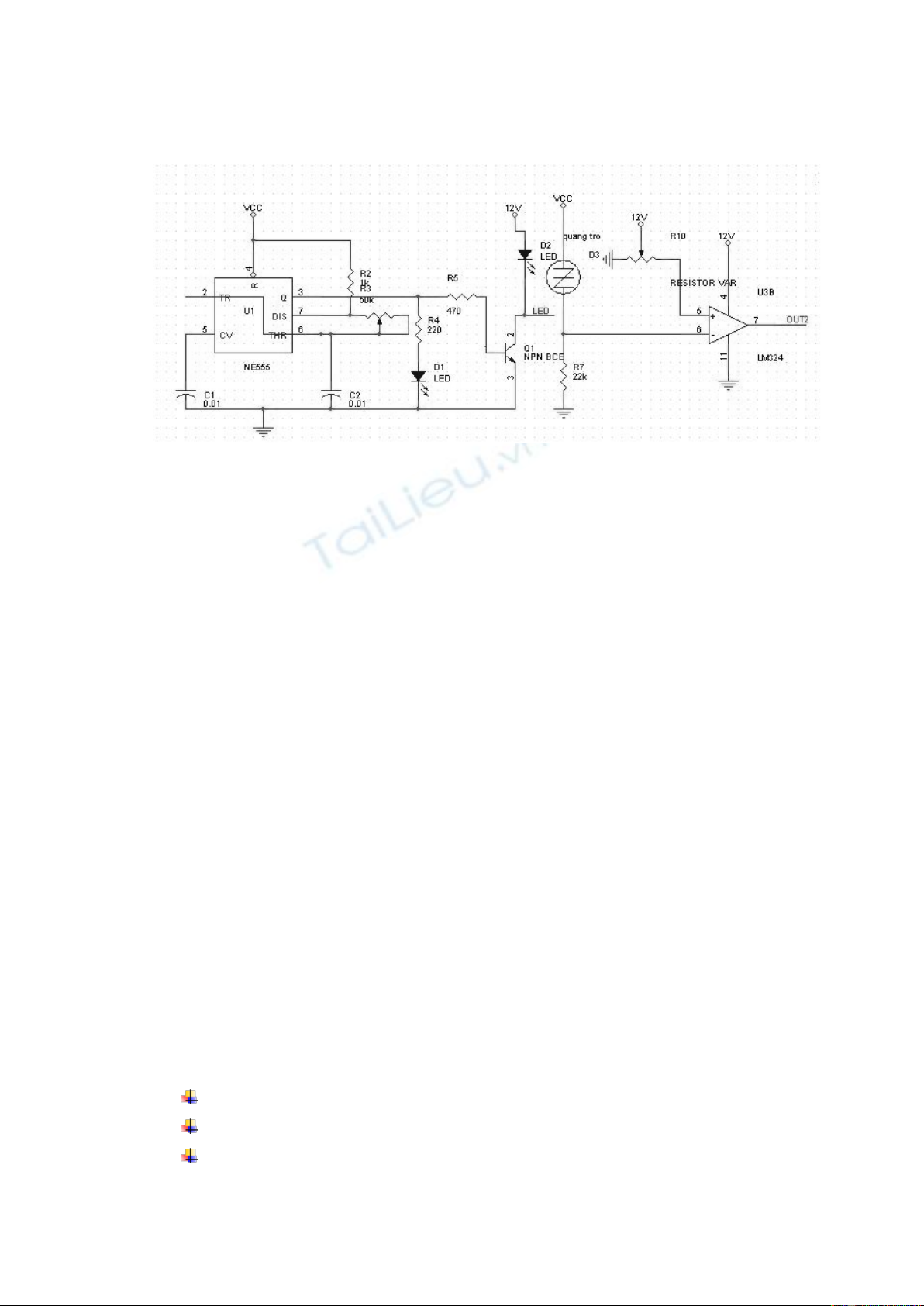 trở D3 thu, điện trở của quang trở D3 giảm xuống, tiếp đó sẽ qua so sánh LM324 để đưa ra