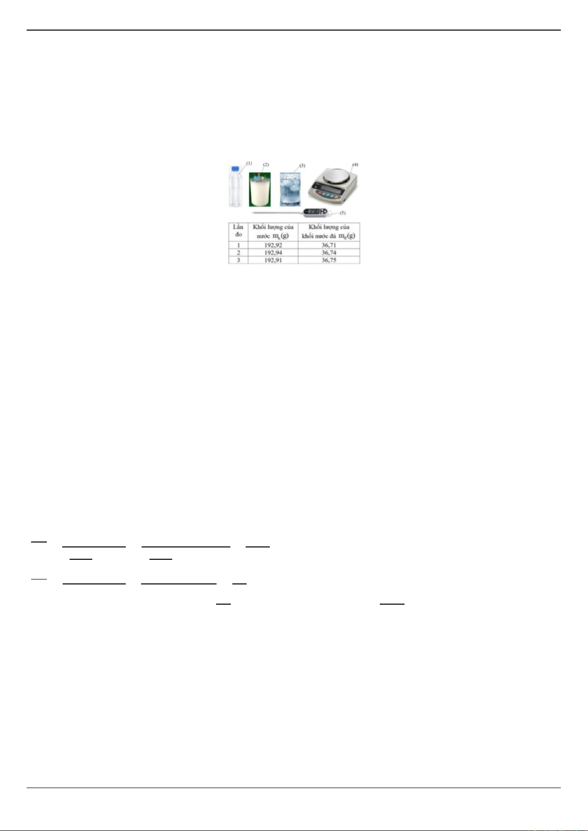 hành. Họ chuẩn bị các dụng cụ gồm: Chai nước (1); bình nhiệt lượng kế (2) cách nhiệt (có que khuấy);