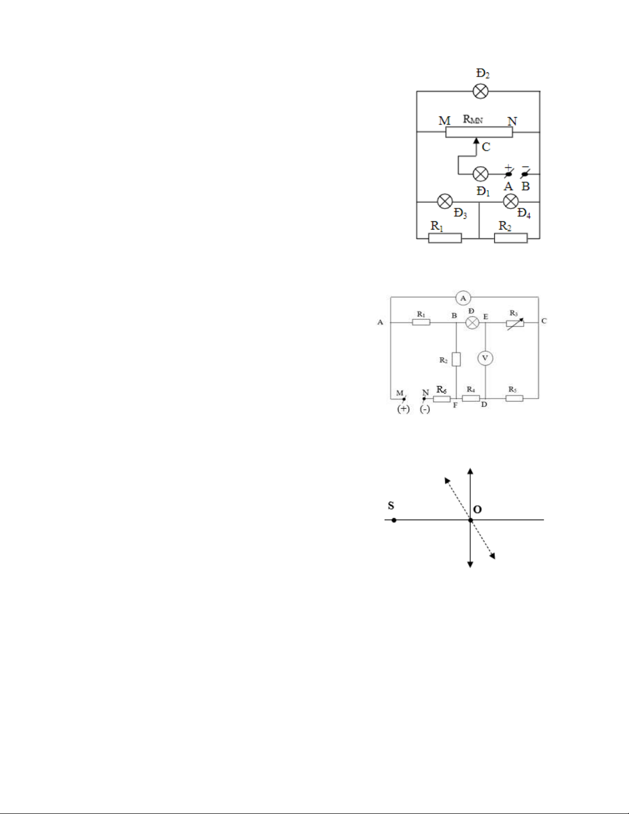 Đ1 ghi 6V – 3W; đèn Đ2 ghi 6V – 0,4W; các đèn Đ3 và Đ4