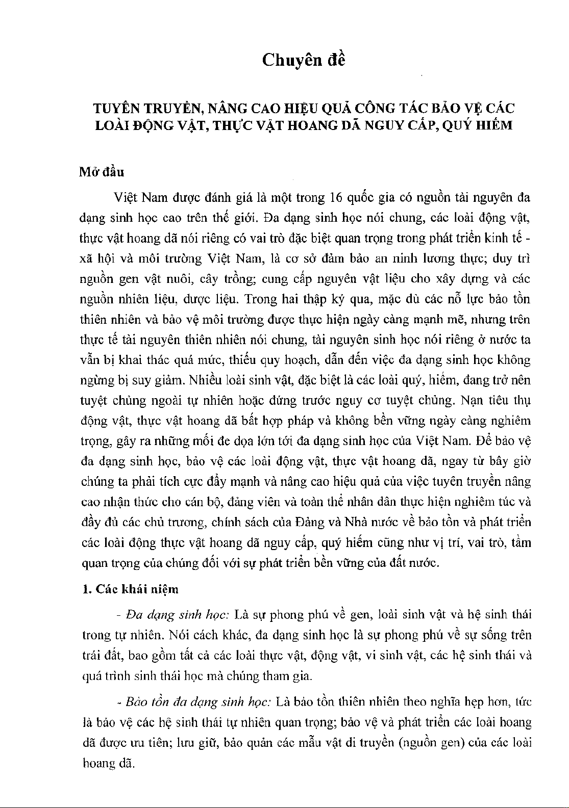 Chuyên đề Tuyên truyền, nâng cao hiệu quả công tác bảo vệ các loài động vật, thực vật hoang dã nguy cấp, quý hiếm