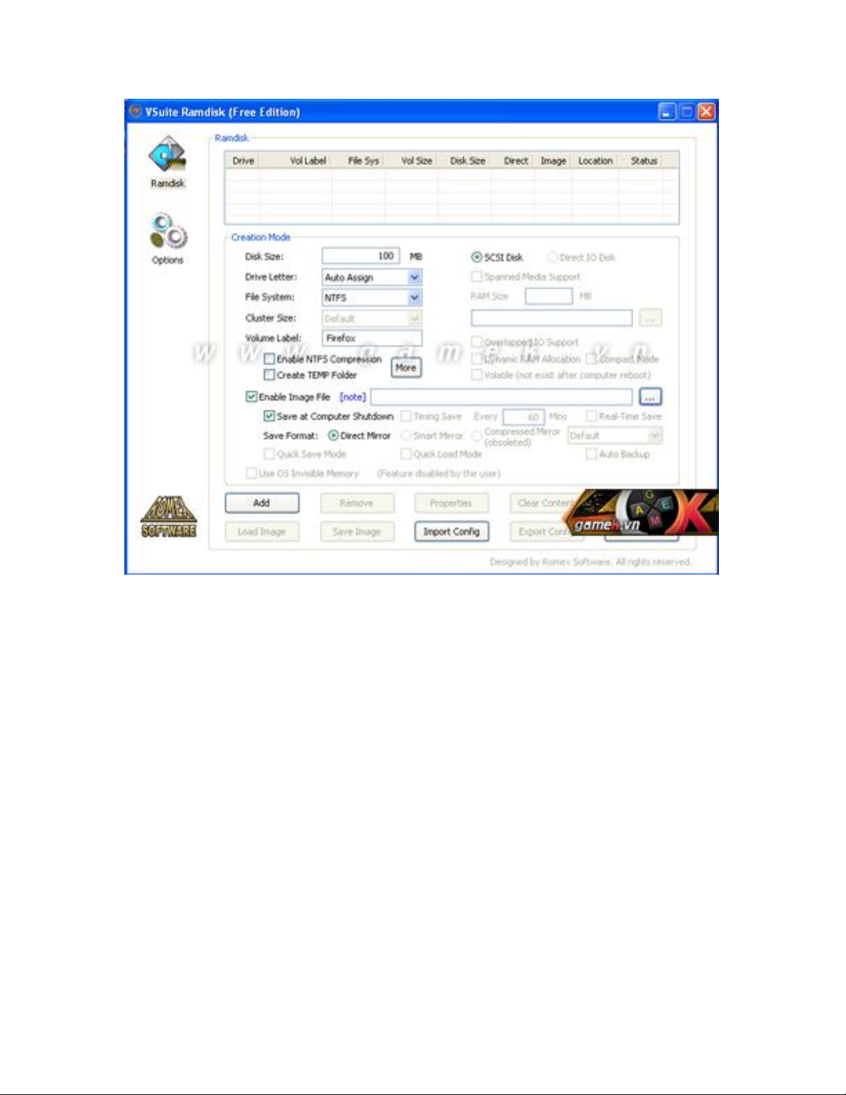 - Volume Label: đặt tên cho đĩa RAM (tên tùy ý).