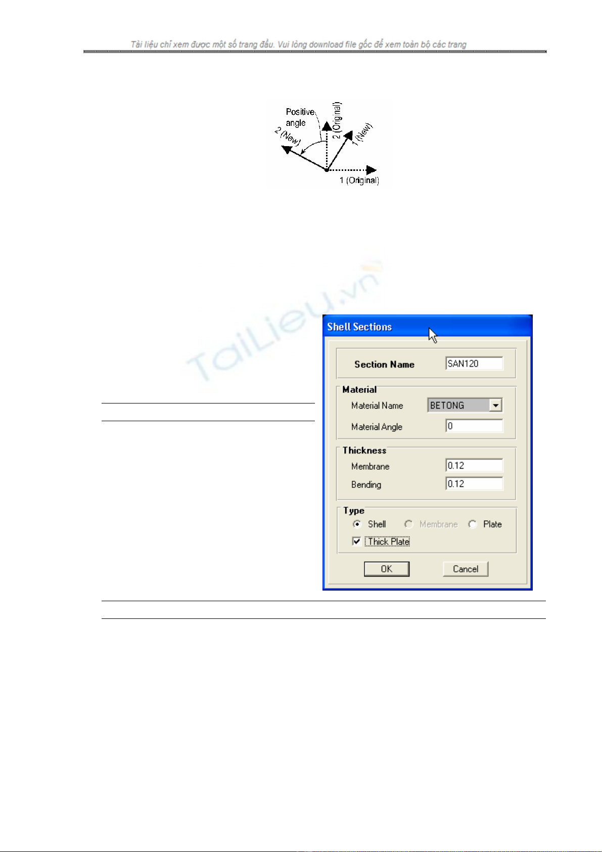 Hệ tọa độ vật liệu và hệ tọa độ phần tử shell có thể khác nhau. Trục 3 của hai hệ tọa độ