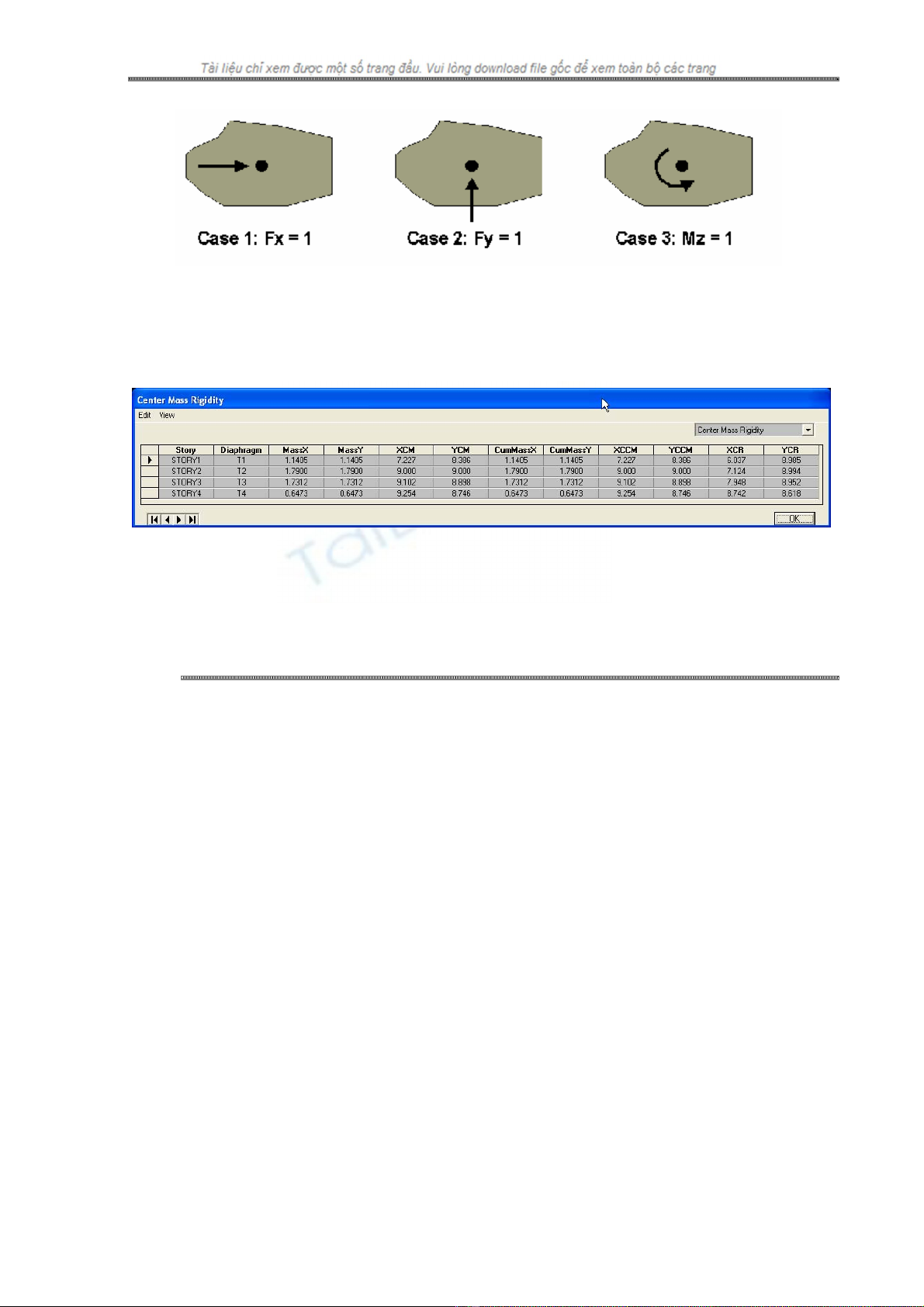 of mass). Người ta tính toán tâm cứng của một diaphragm dựa trên ba trường họp tải trọng