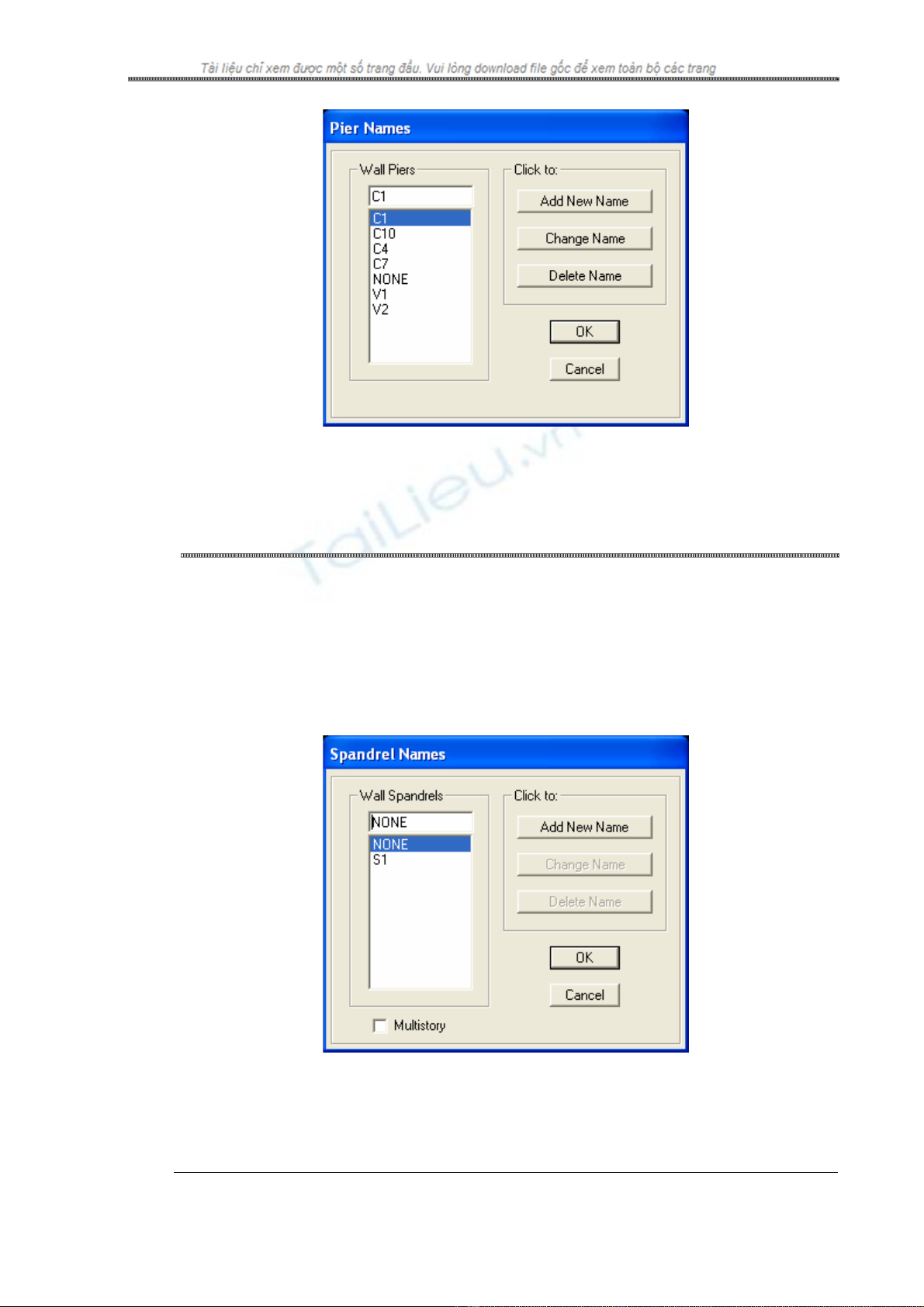 o Để gán tên pier cho phần tử area, chọn Assign Æ Shell/Area Æ Spandrel