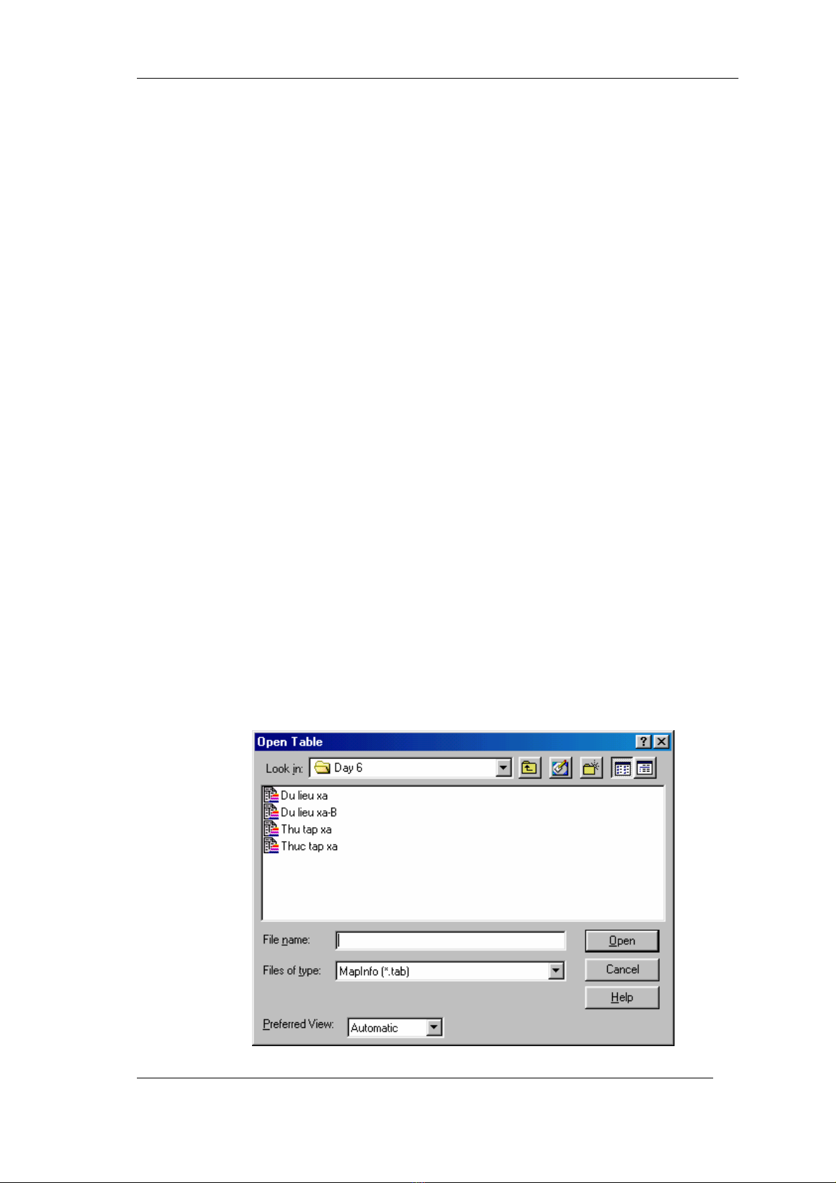 nghĩa khi chọn một tập tin có phần mở rộng là *.tab (trong môi trường MapInfo)