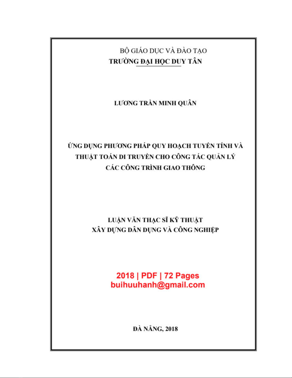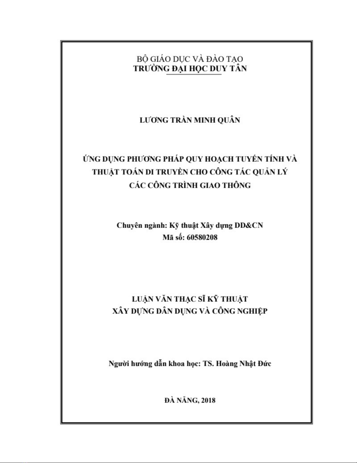 Luận văn Thạc sĩ Kỹ thật xây dựng dân dụng và công nghiệp: Ứng dụng phương pháp quy hoạch tuyến tính và thuật toán di truyền cho công tác quản lý các công trình giao thông. Nghiên cứu trình bày tổng quan về quản lý xây dựng, ứng dụng các phương pháp tối ưu hóa trong quản lý xây dựng, đề xuất một số ứng dụng trong việc giải quyết các bài toán tối ưu hóa.