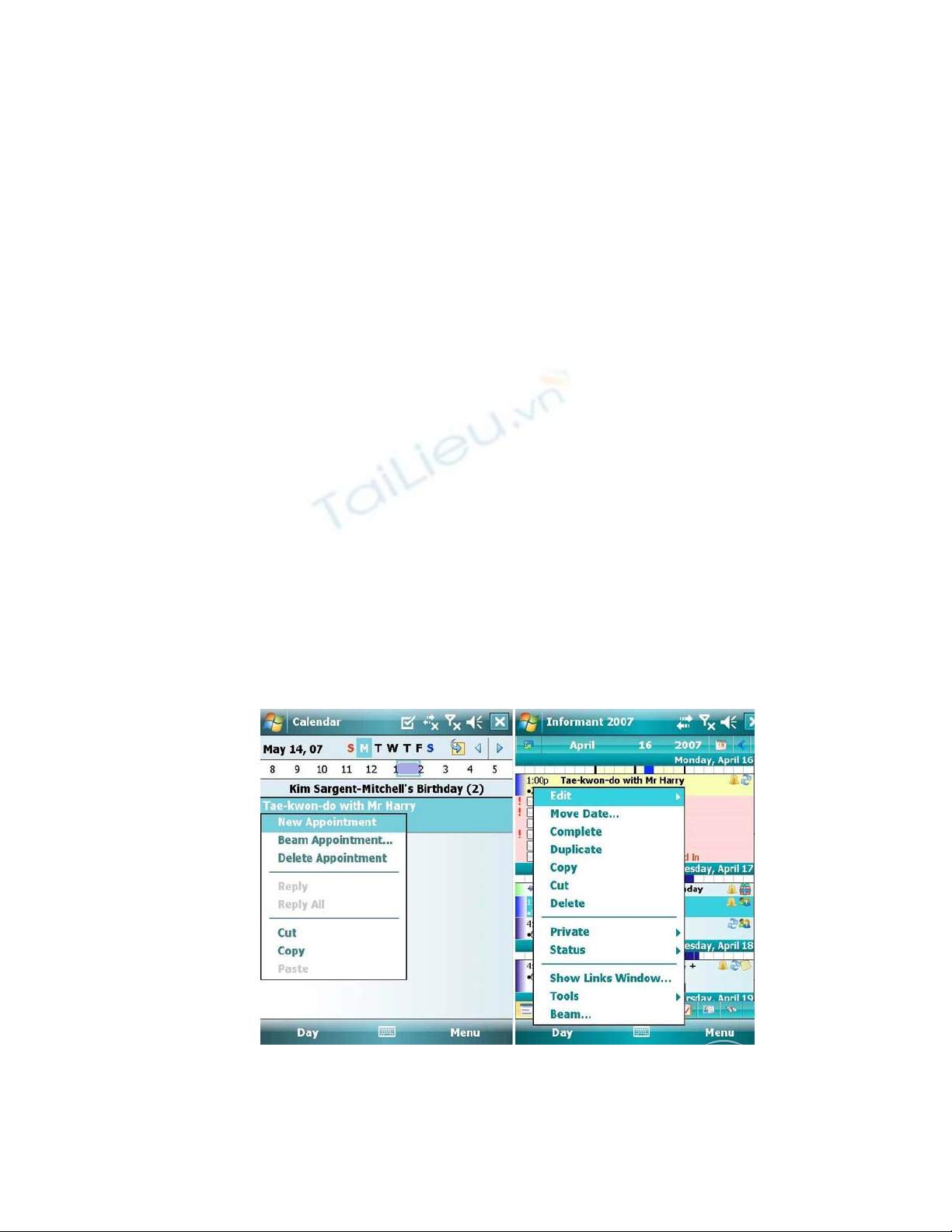 hai ứng dụng, bạn có thể thêm các cuộc hẹn mới từ màn hình lịch. Chuyển