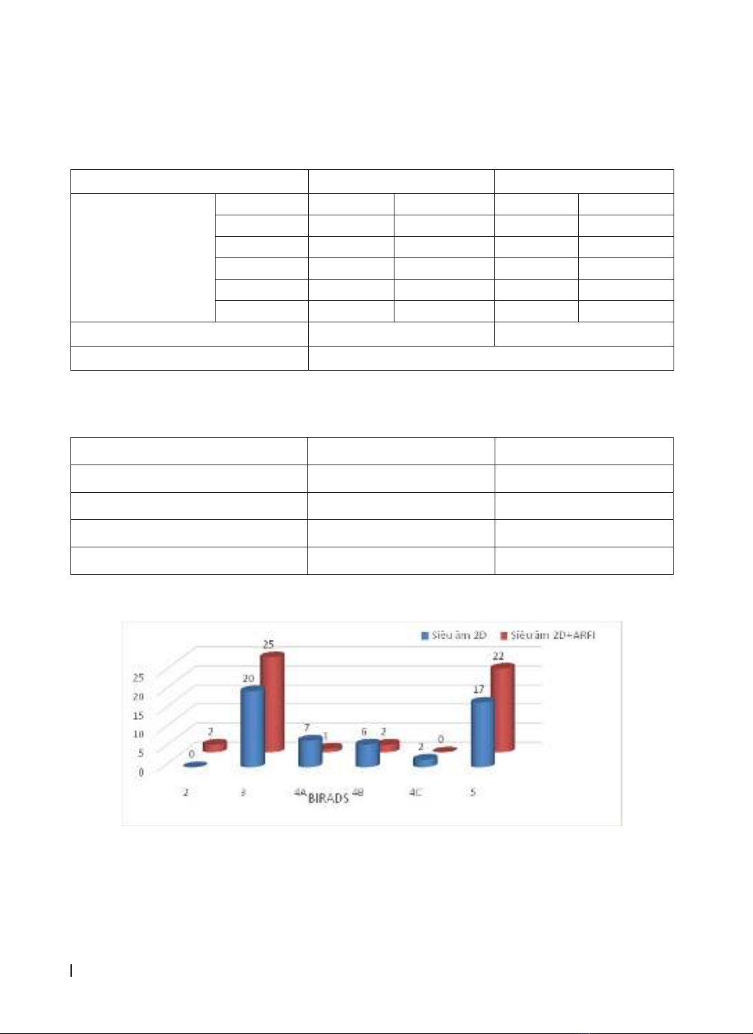 nhóm siêu âm 2D ác tính với BI-RADS ≥ 4. Chúng tôi chia 2 nhóm tương tự đối với kết quả phân BI-RADS sau