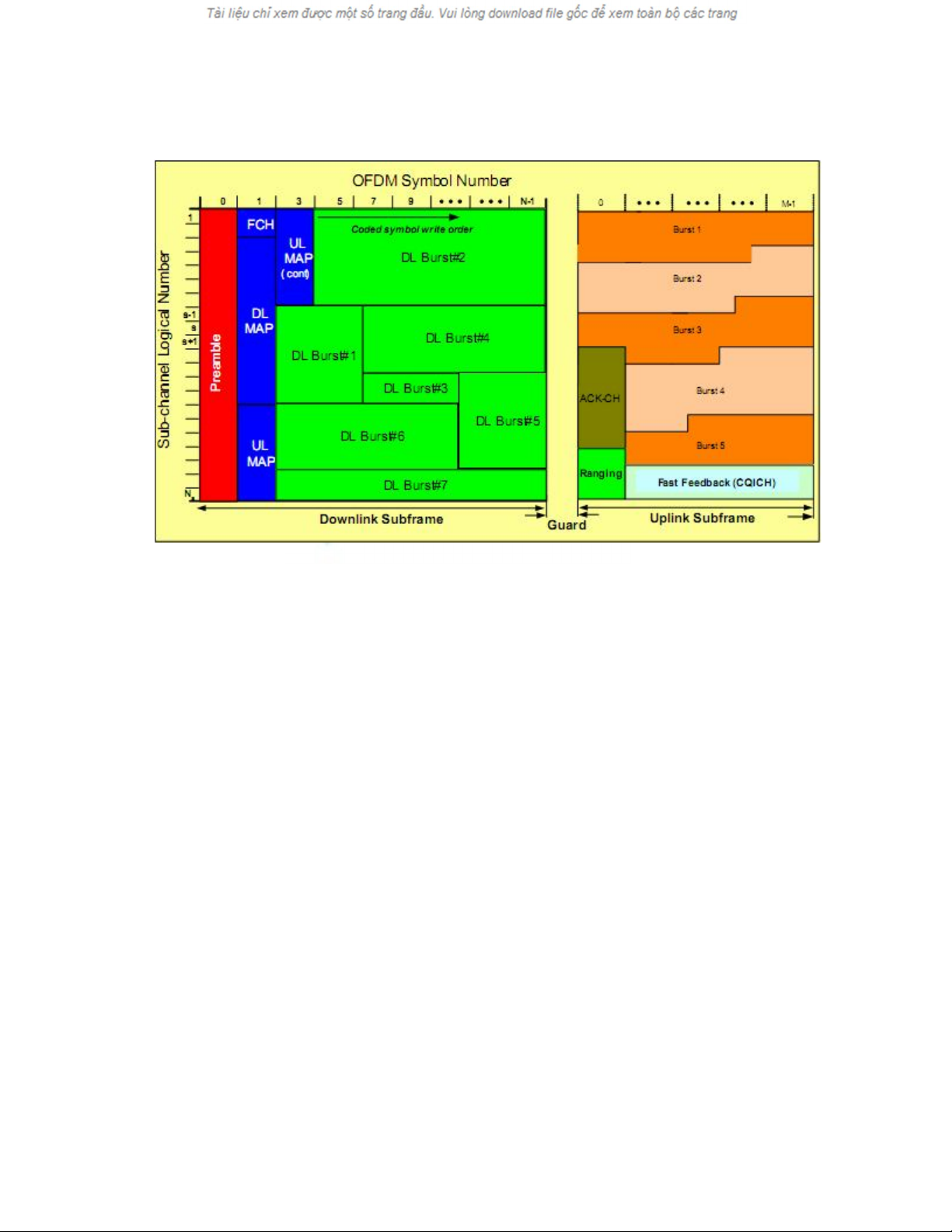 Hình 14 mô tả cấu trúc khung OFDM ở chế độ TDD. Mỗi khung được chia thành các