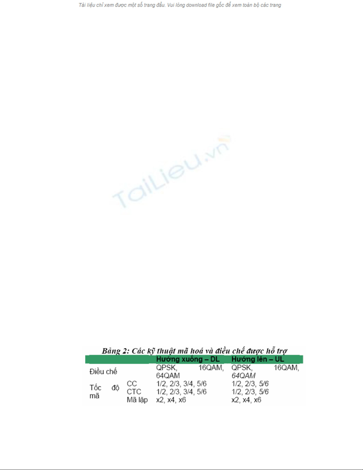 tuỳ chọn. Bảng 2 tổng kết các nguyên lý mã hoá và điều chế hỗ trợ trong WIMAX di