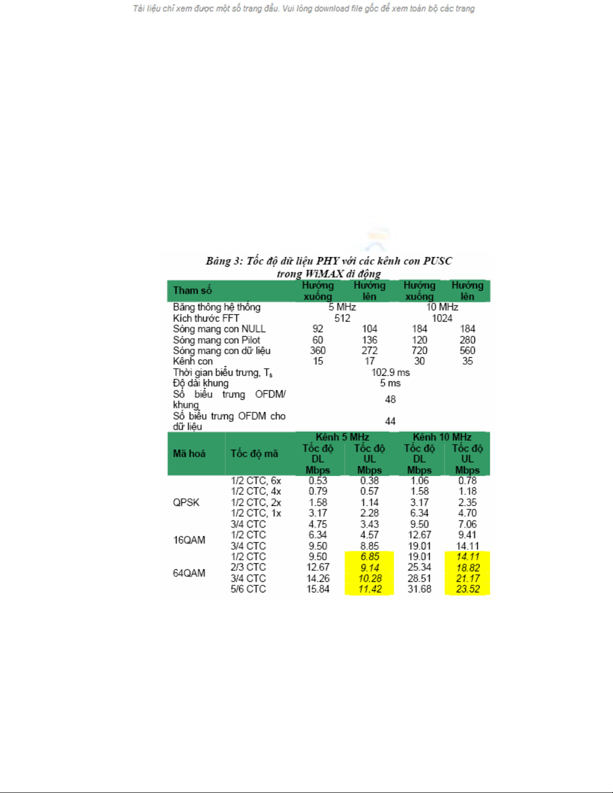 liệu như minh hoạ trong bảng 3 (với độ rộng các kênh là 5 Mhz và 10 Mhz với các