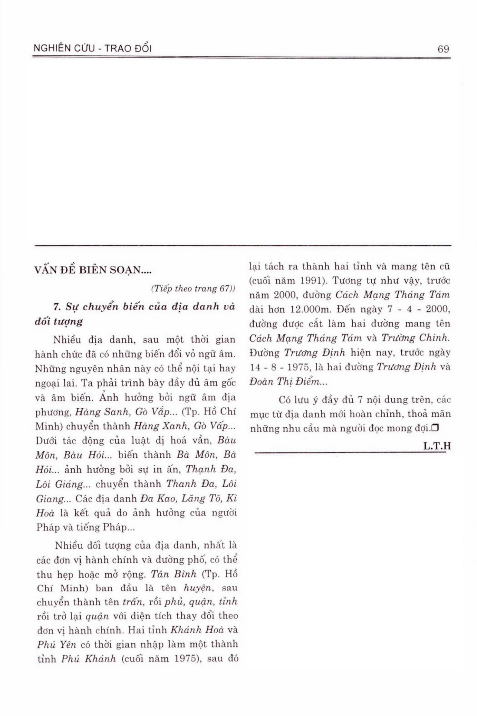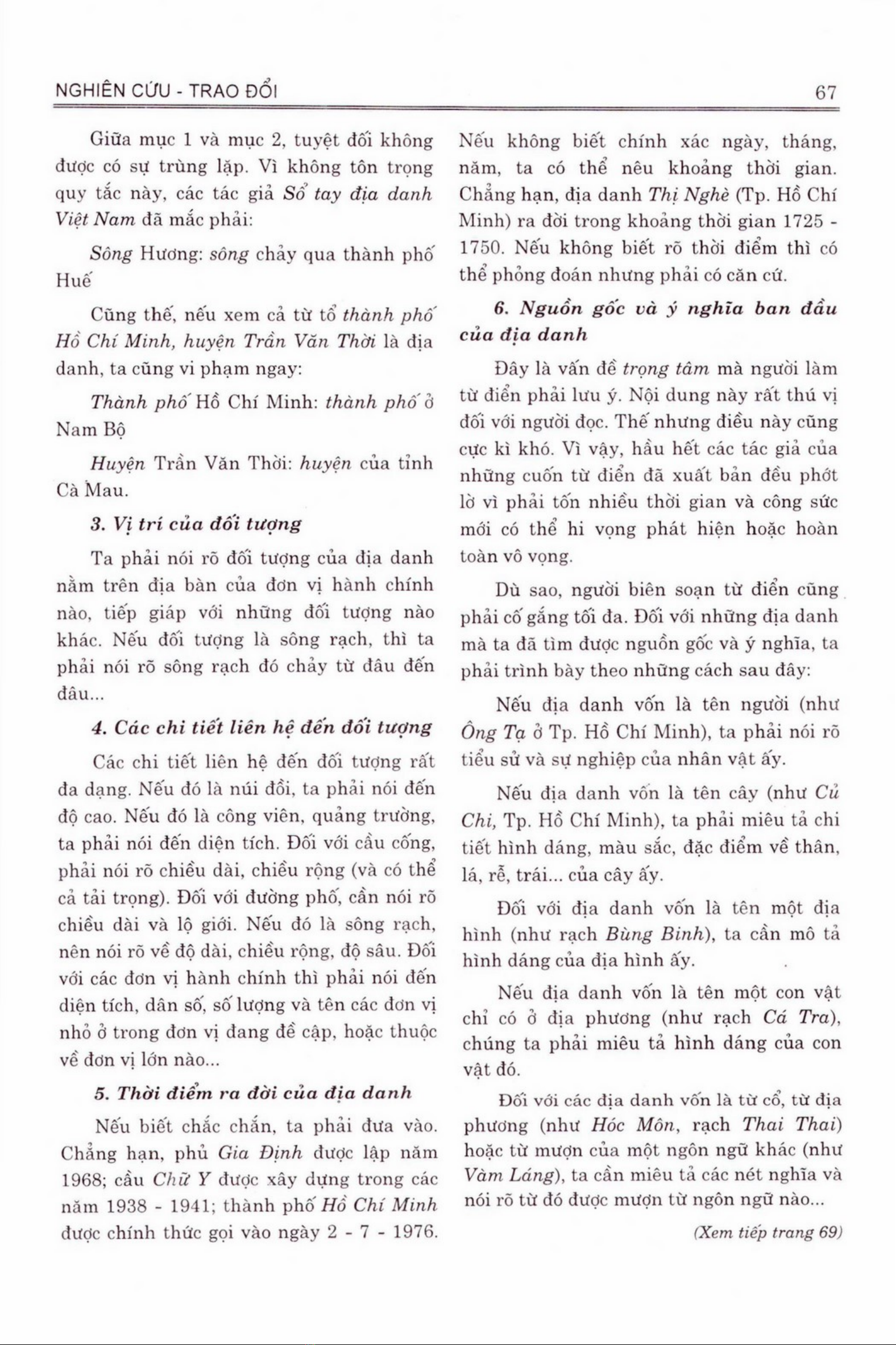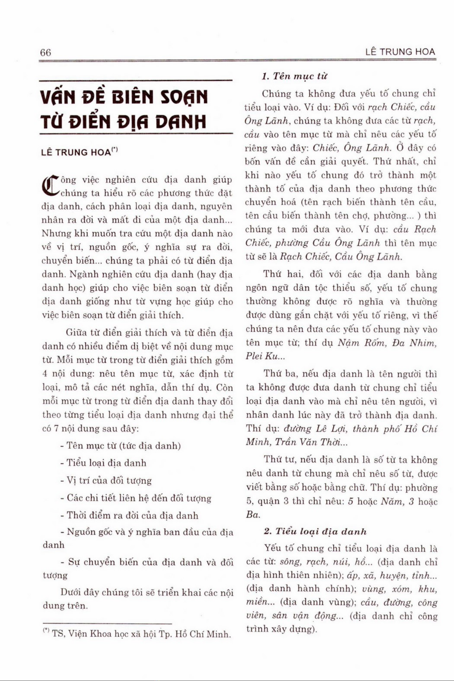 Công việc nghiên cứu địa danh giúp chúng ta hiểu rõ các phương thức đặt địa danh, cách phân loại địa danh, nguyên nhân ra đời và mất đi của một địa danh... Nhưng khi muốn tra cứu một địa danh nào về vị trí, nguồn gốc, ý nghĩa sự ra đời, chuyển biến... chúng ta phải có từ điển địa danh. Ngành nghiên cứu địa danh (hay địa danh học) giúp cho việc biên soạn từ điển địa danh giống như từ vựng học giúp cho việc biên soạn từ điển giải thích.