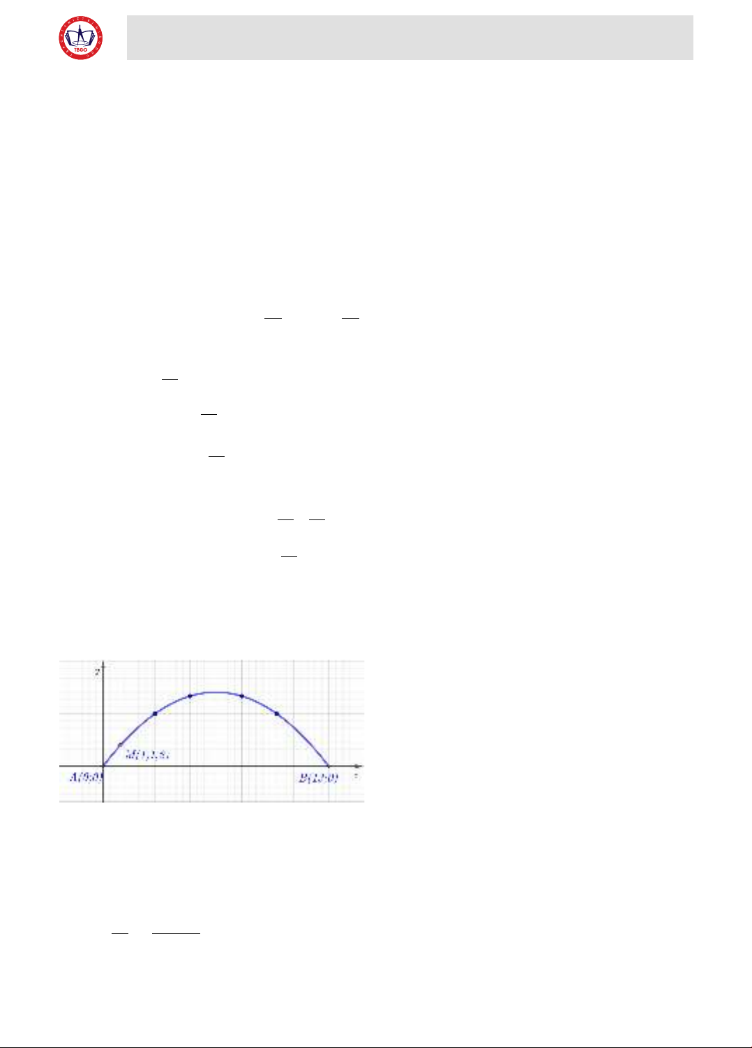 y = −0,1x2 + 1,3x. Vậy chiều cao của cổng là