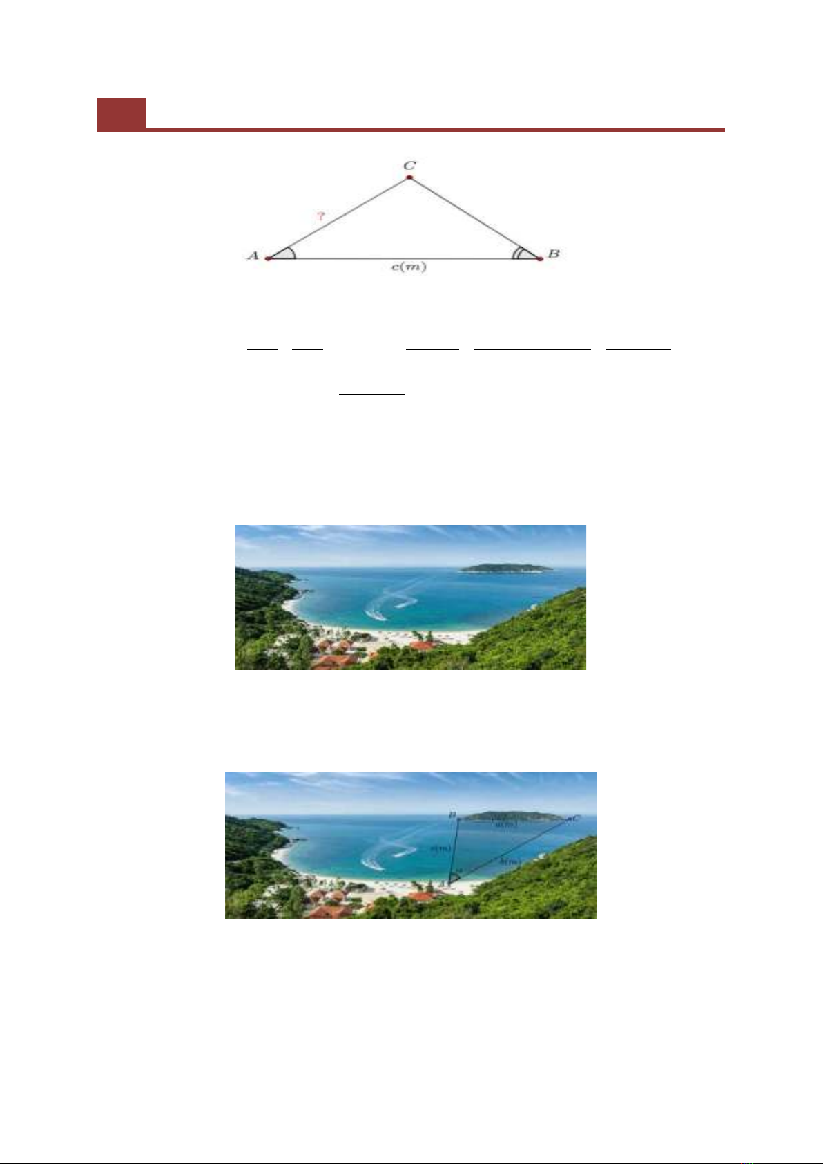dụng định lí Cosin và định lí Sin để tính khoảng cách giữa hai điểm trên thực tế (mà không cần đo trực tiếp) thông