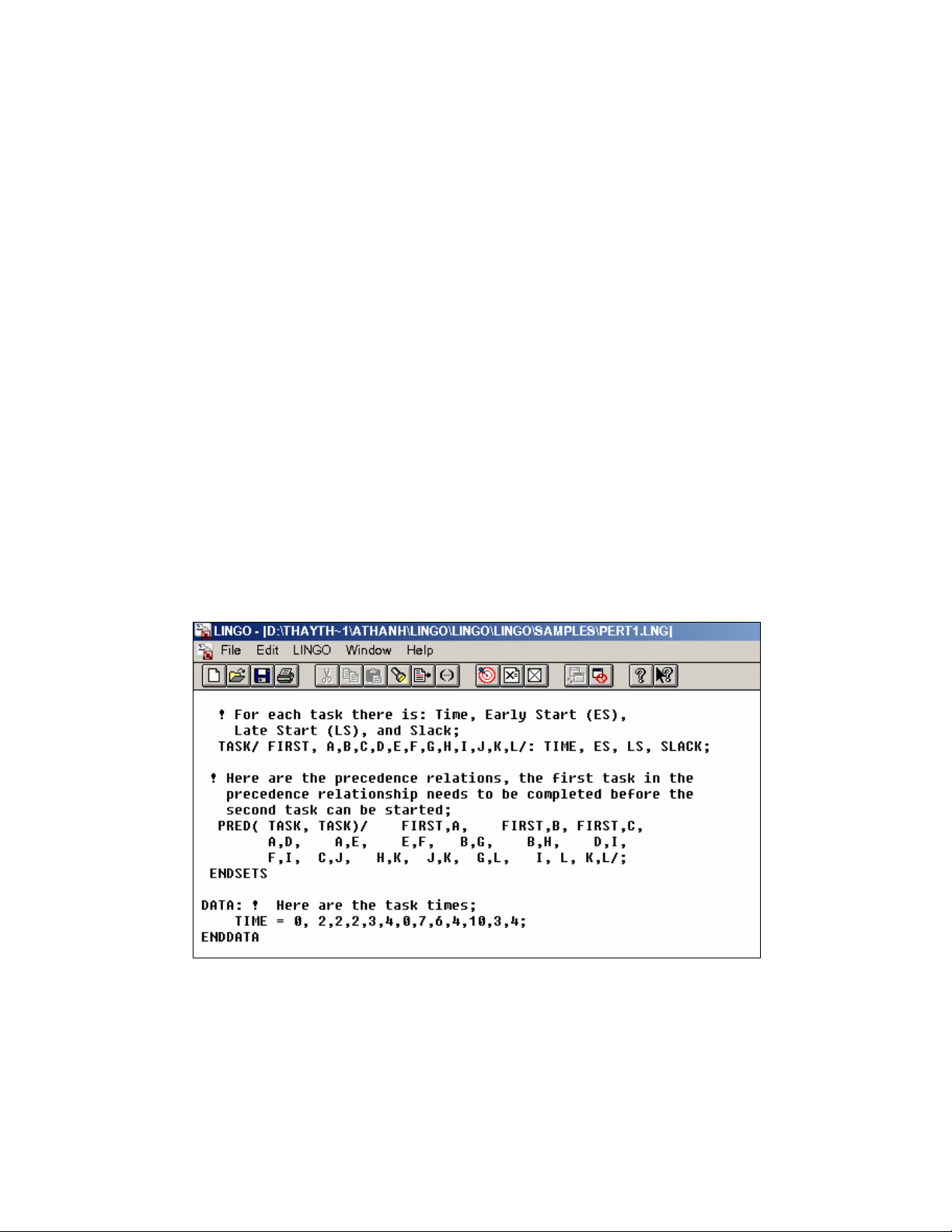 vào bài toán PERT mu. Sau ñó nhp các s liu ñ u vào ca bài toán c n gii vào thay