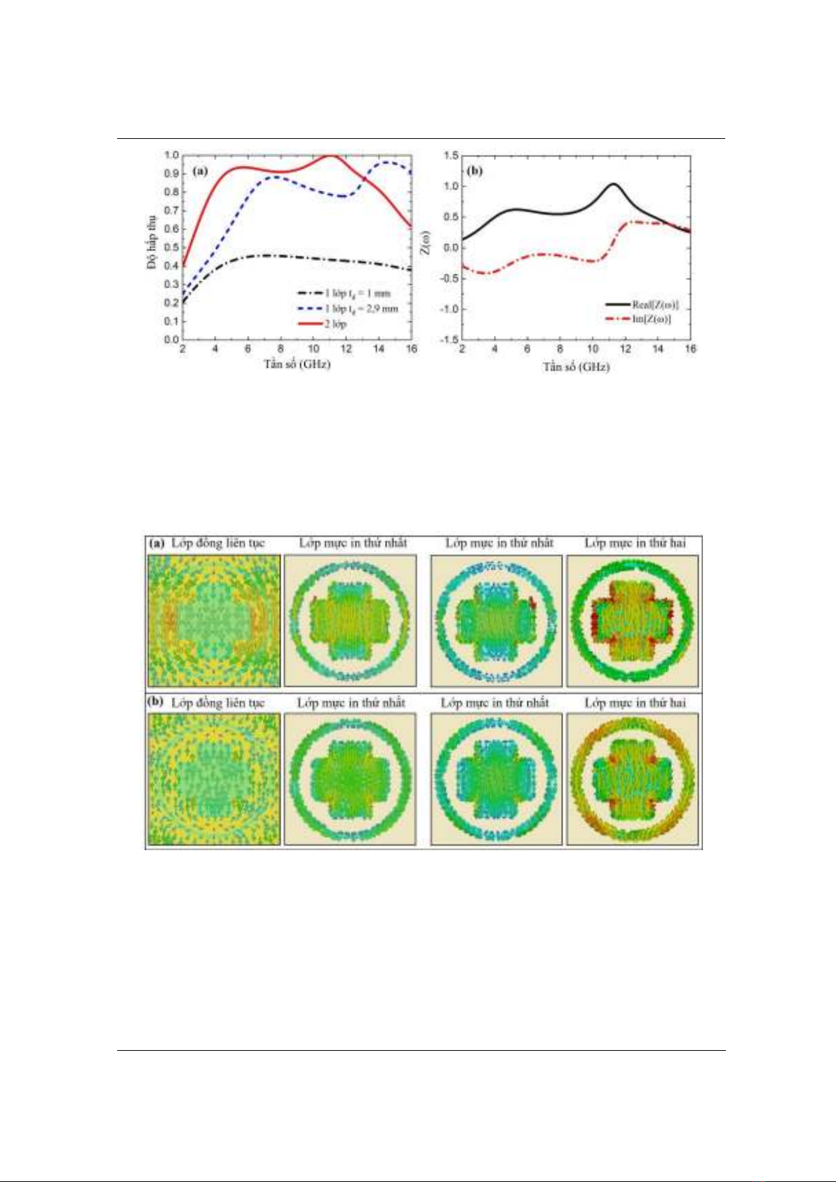 Hình 2(a). Có thể thấy ở dạng đơn lớp, khi độ dày lớp điện môi là 1,0 mm, vật liệu có độ hấp thụ