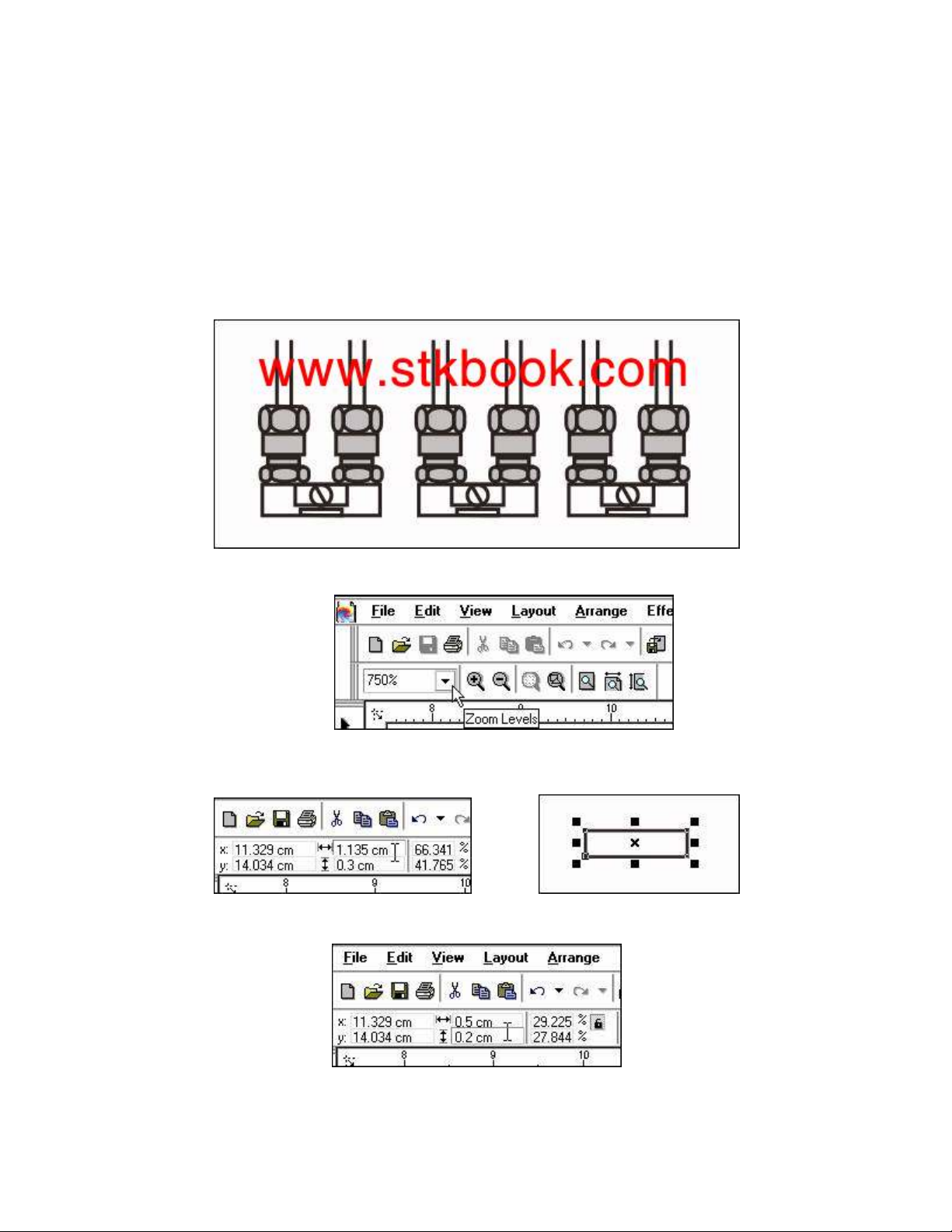 thanh Property bar tại mục Zoom Levels nhập vào giá trị là 750 % để phóng lớn vùng nhìn.