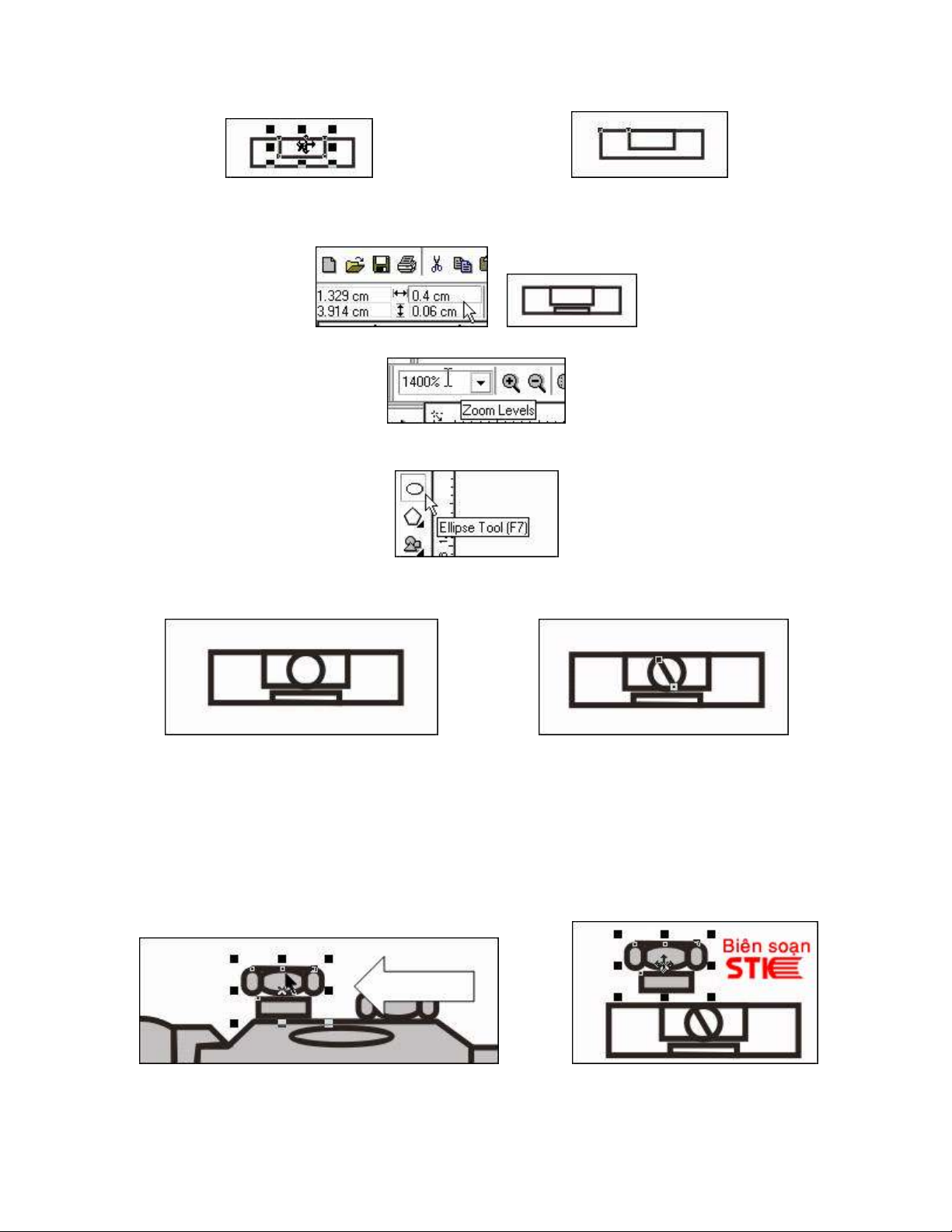 Thực hiện tương tự để vẽ một hình chữ nhật có kích thước 0.4 x 0.06 cm. Nhấn giữ chuột