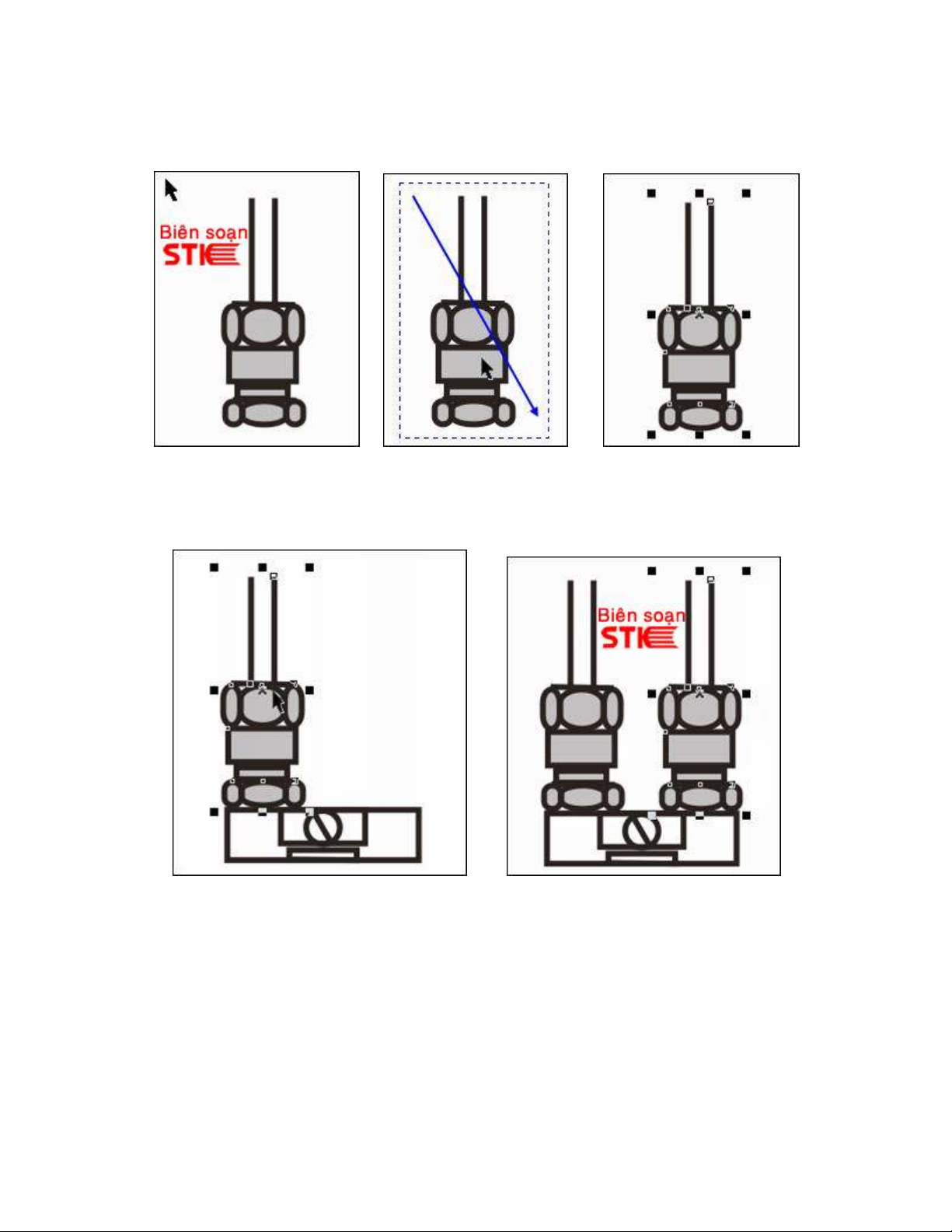 sau đó là Ctrl + V để tạo bản sao của đối tượng. Nhấn giữ chuột vào vị trí như hình mũi tên