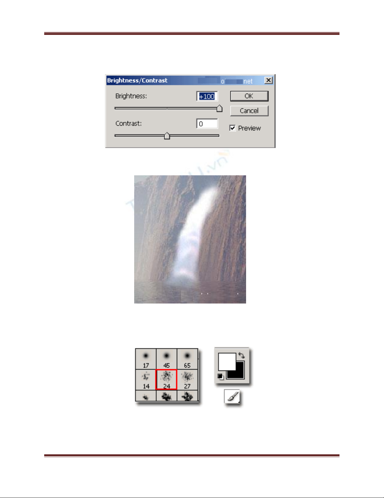 4.) Vào Image > Adjusrt > Brishtness/Contrast điểu chỉnh thông số như