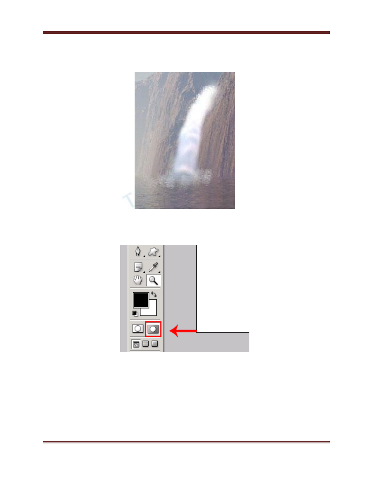 Tạo layer mới , sau đó rê Brush chấm lên phần chân thác nhằm tạo cảm