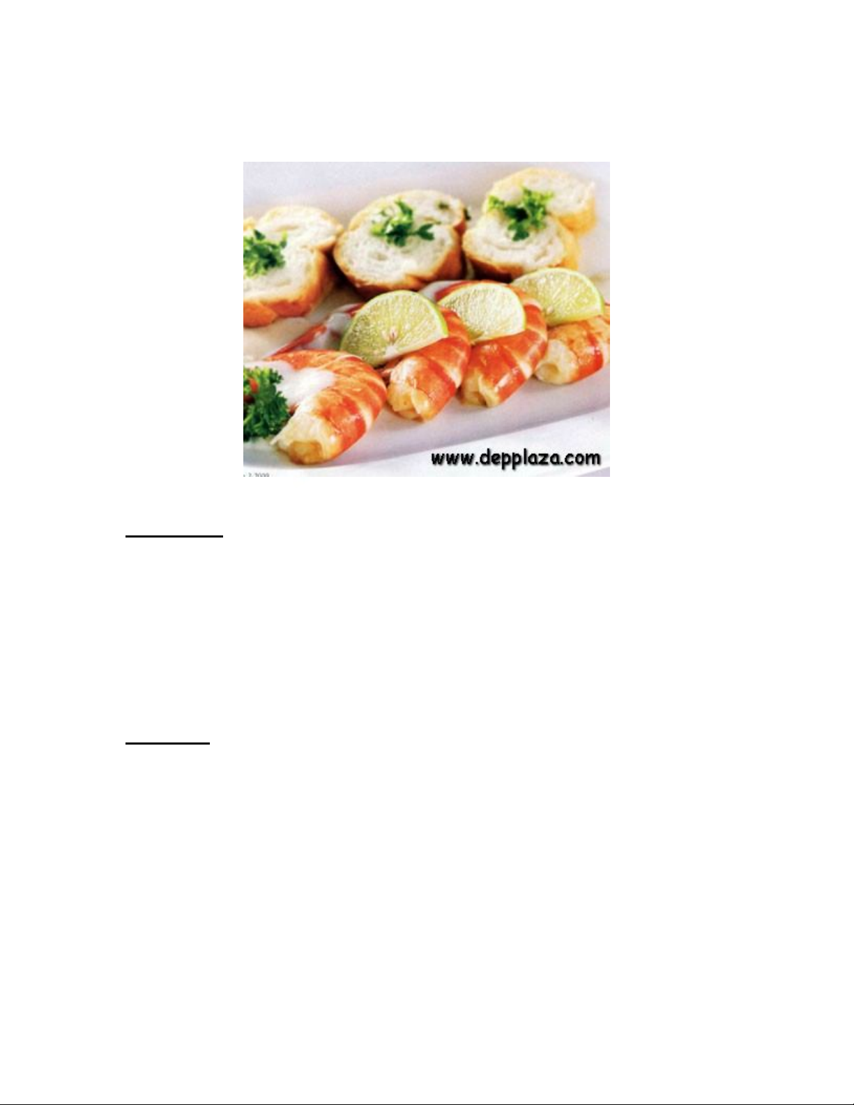 400g tôm tươi, 1ổ bánh mì bagguet, 1 thìa cà phê vỏ chanh mài nhuyễn, 1 thìa cà