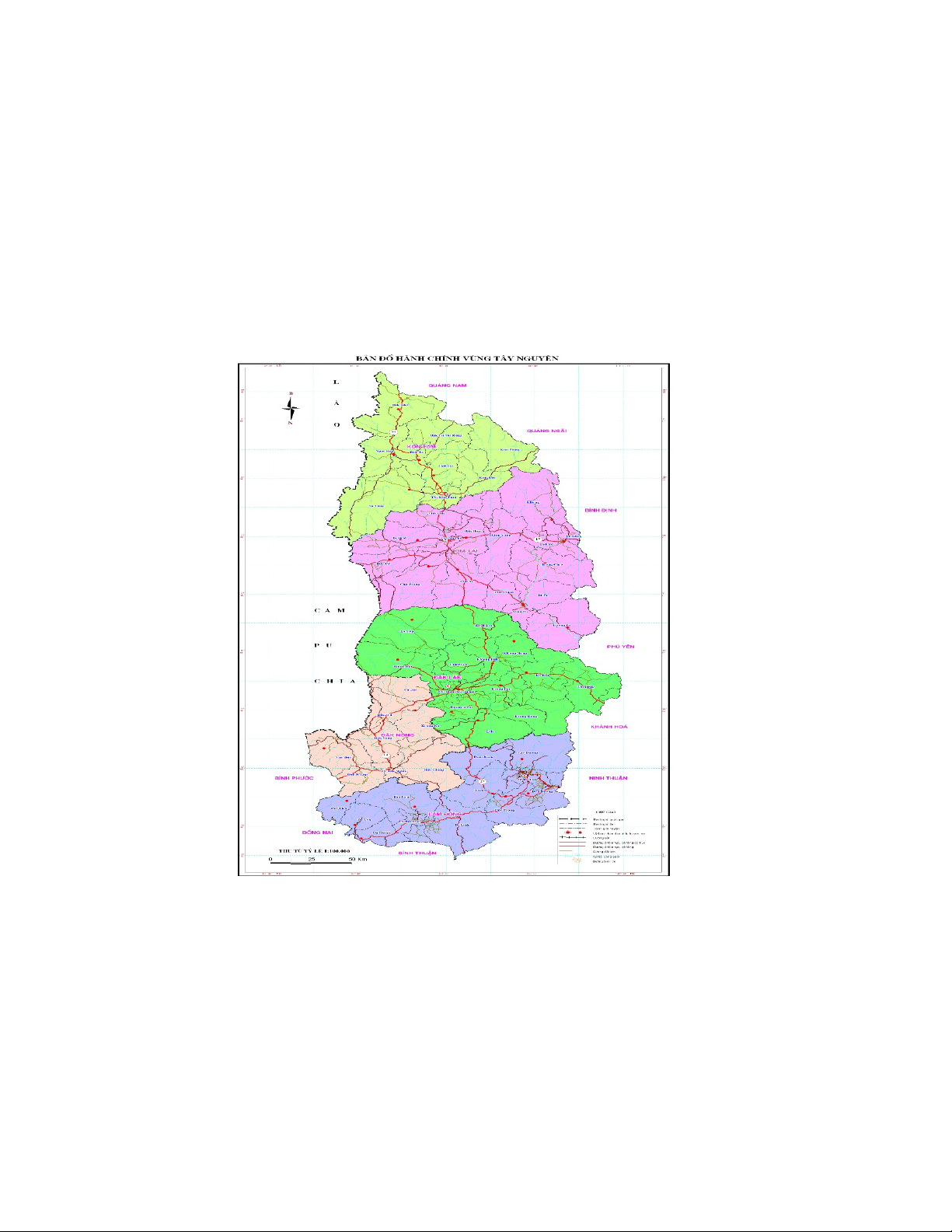 Kon Tum, Gia Lai, Đắk Lắk, Đắk Nông và Lâm Đồng với diện tích tự nhiên