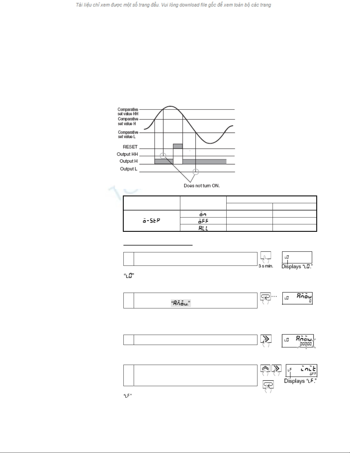 Nếu giá trị đo thay đổi và kết quả so sánh được đặt ON cho tới lúc này mới chuyển OFF, thì đầu ra so sánh