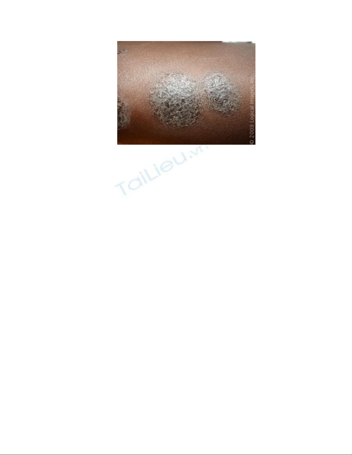 tiền, đường kính thường >4cm, nền da đỏ, có thể có vảy da, vảy tiêt và những vết