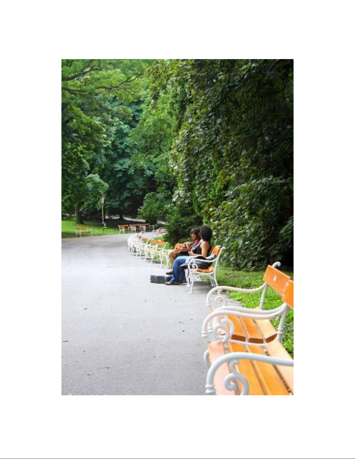 Ở một góc công viên, hai chàng nghệ sĩ ngồi biểu diễn không có khán giả: một