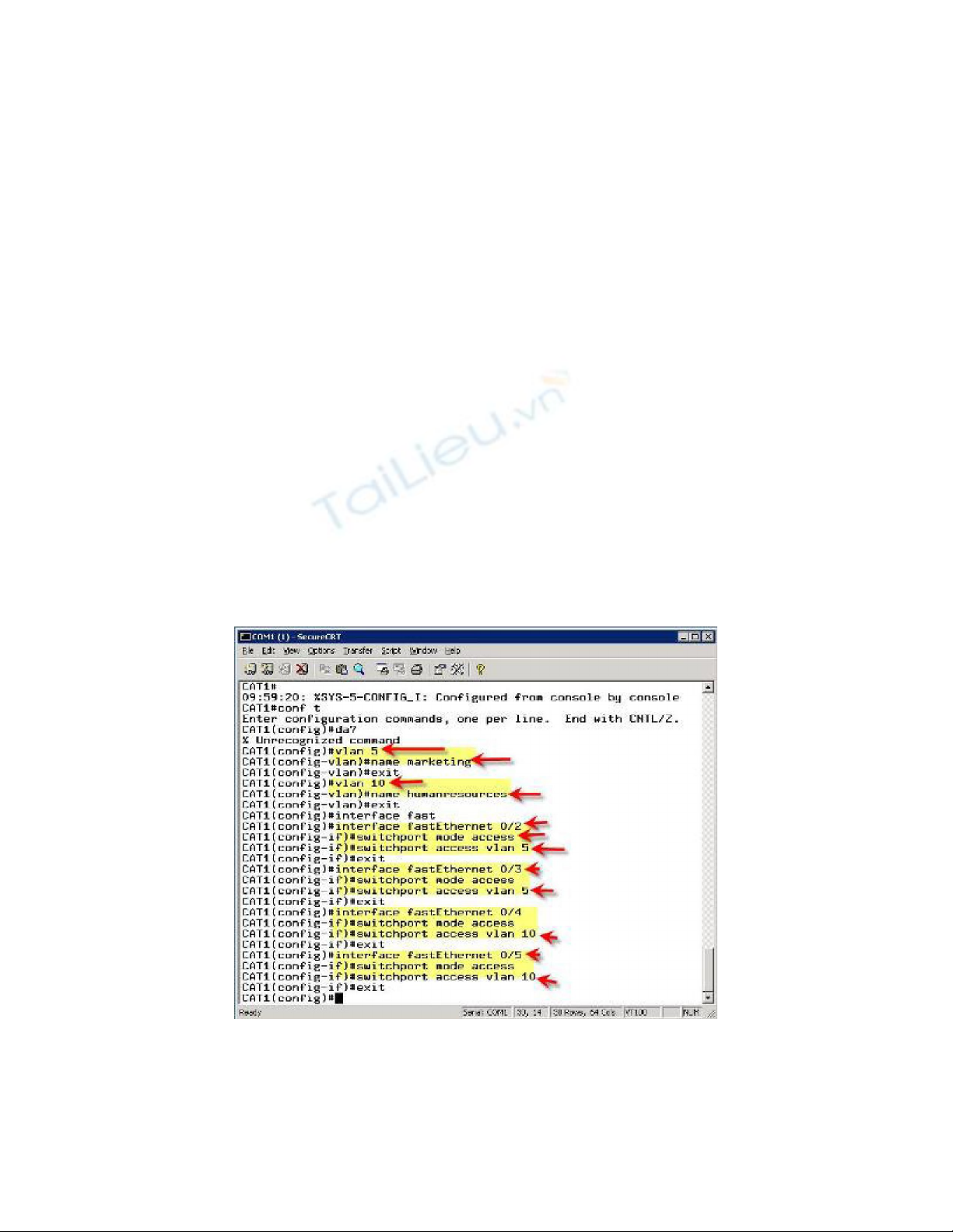 vào VLAN 5 (Marketing) và cổng 4 và 5 vào VLAN 10 (Nhân sự). Sau đây