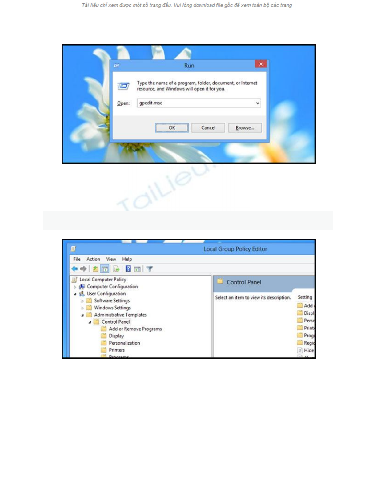 Nhấn tỗ hợp phím tắt Win + R để gọi hộp thoại Run. Nhập lệnh "gpedit.msc"