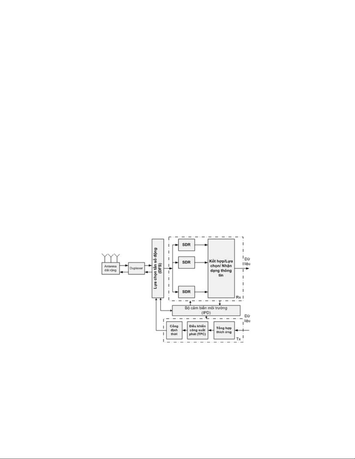 Mô hình vô tuyến thông minh điển hình trên cơ sở SDR như Hình 2. Theo đó, các