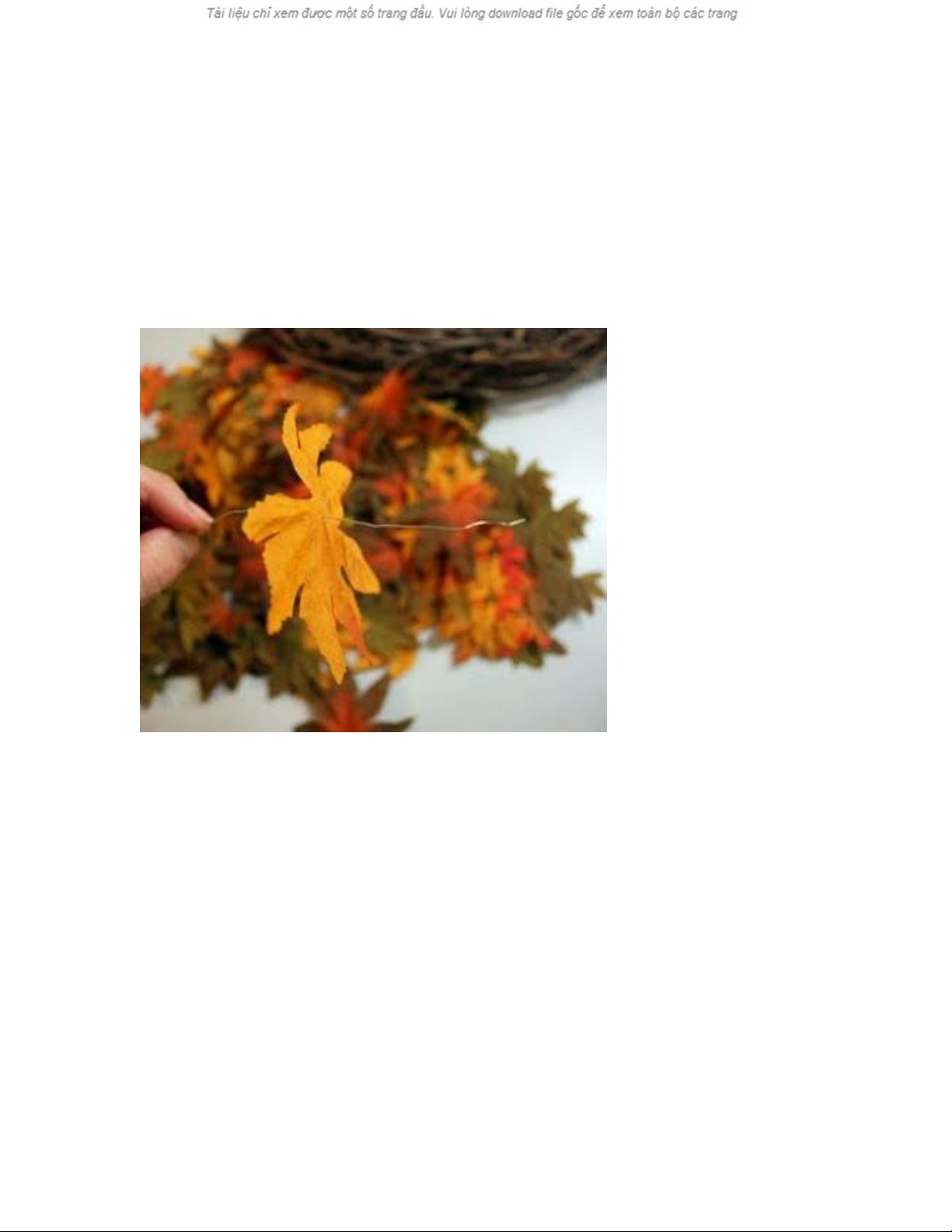 Đầu tiên chúng mình sẽ xâu lá phong vào dây thép. Đừng cắt dây thép ra
