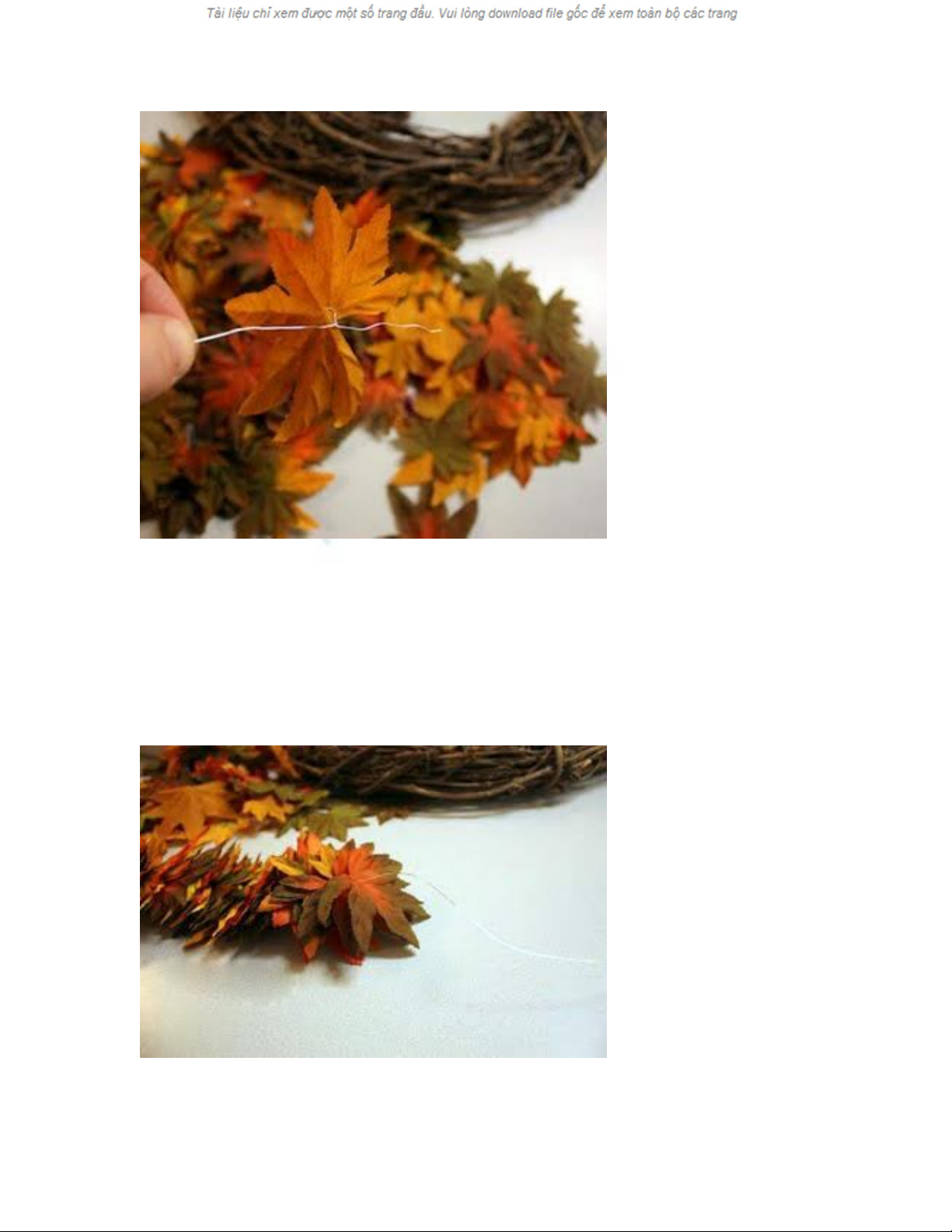 Cứ xâu xong 1 chiếc lá, mình lại vặn dây thép để thắt nút cố định, giữ cho lá