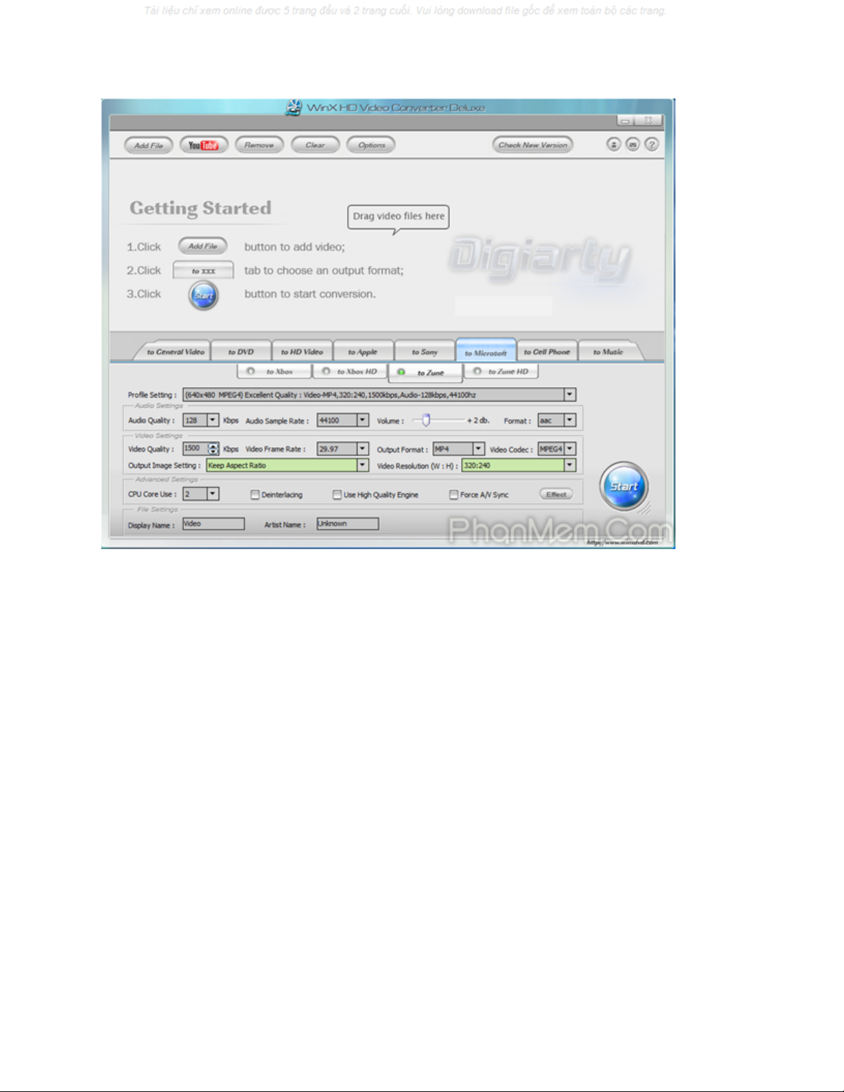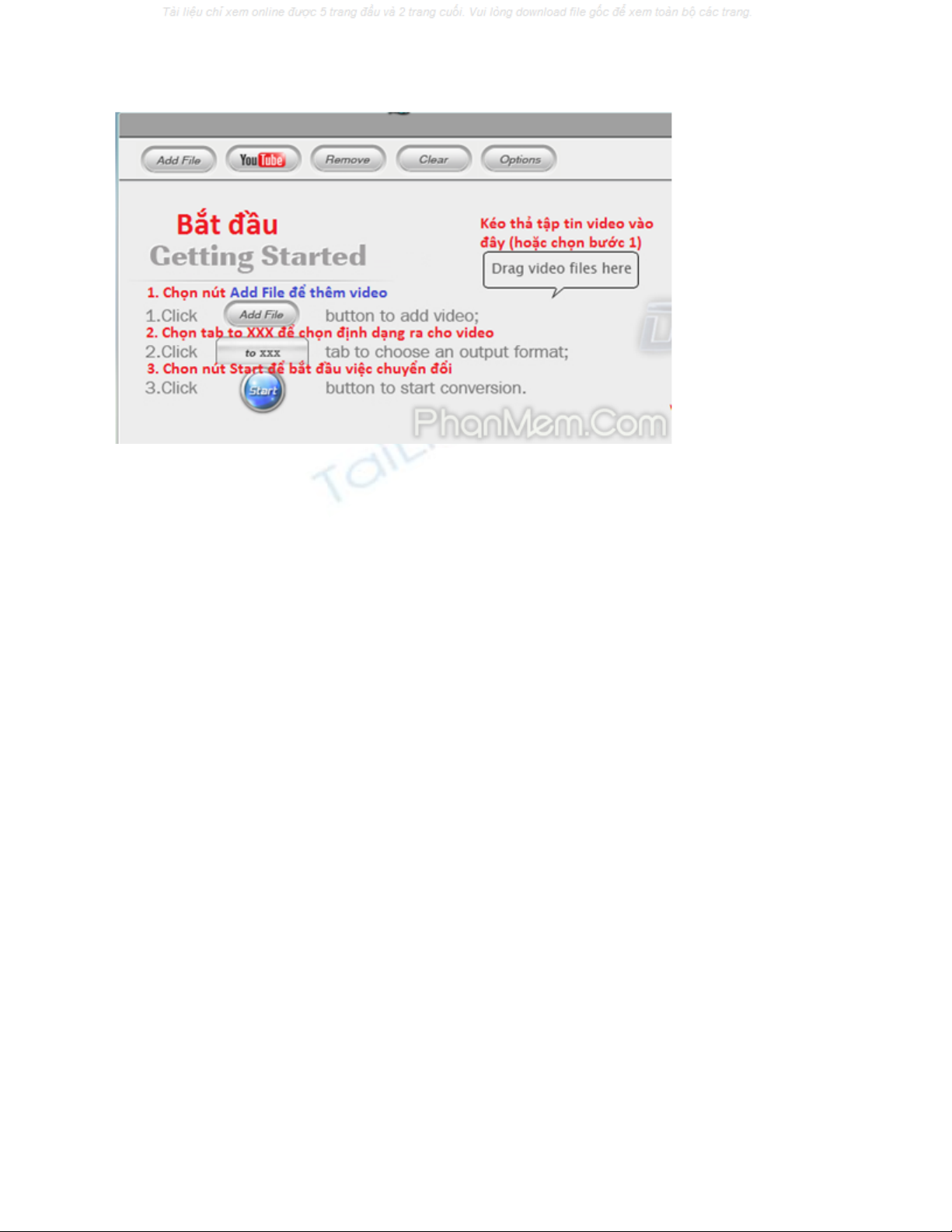 Ở hình này là hướng dẫn ngắn cho việc bắt đầu chuyển đổi video bằng WinX. Để