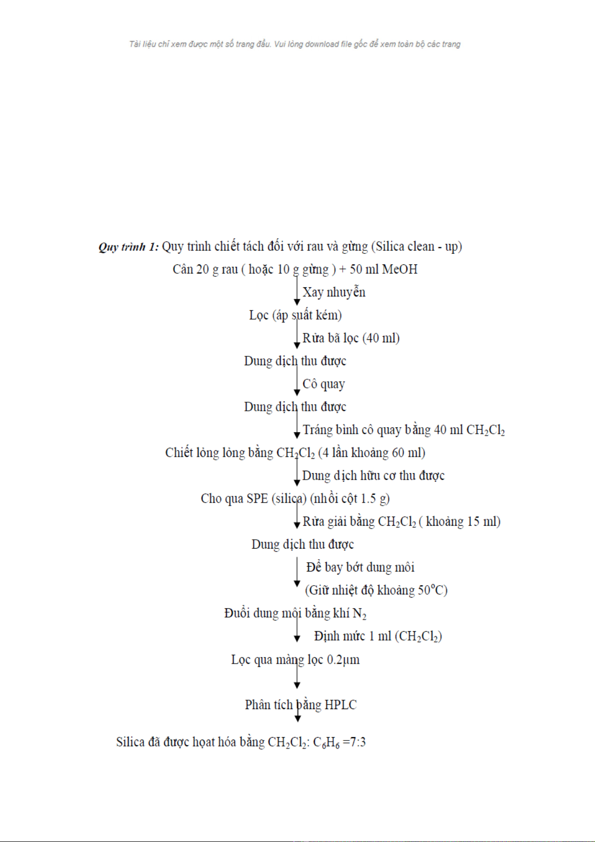 lỏng (LLS) nh ưquy trình 1 và quy trình 2. Cột SPE C18 - 500 mg của Varian.