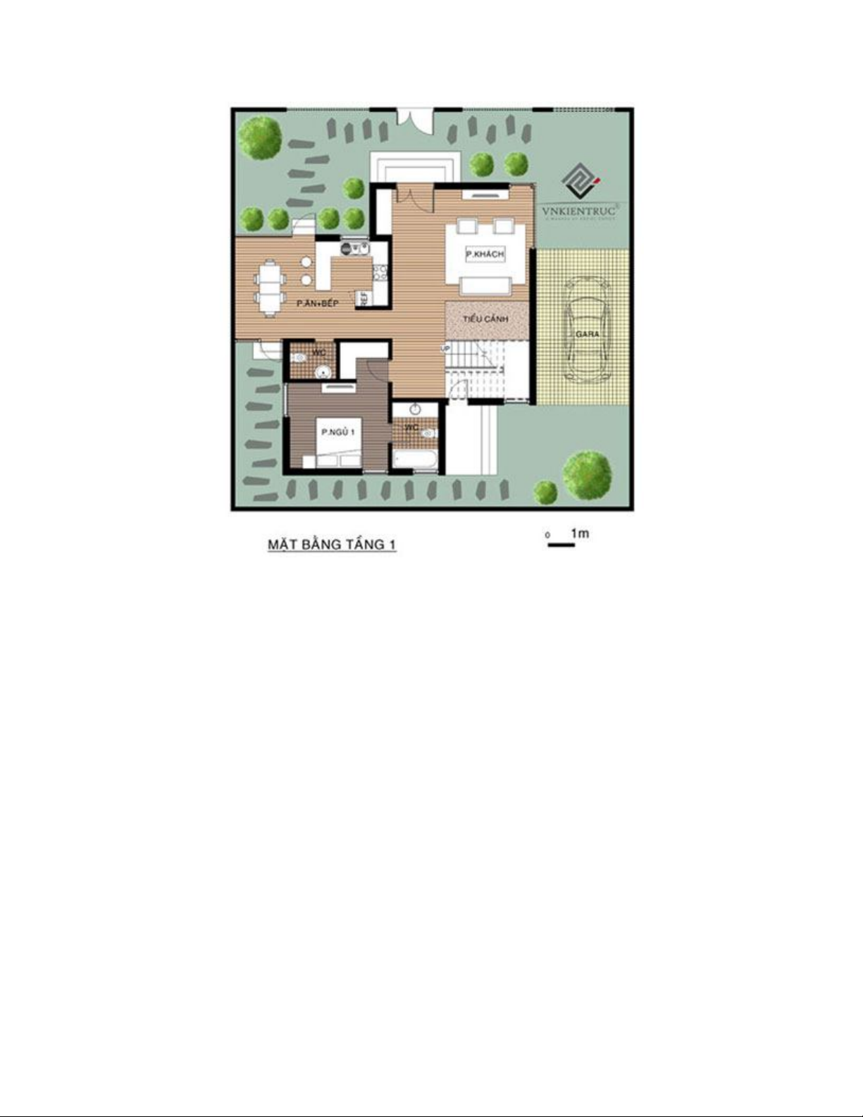 Tầng 1 bao gồm 1 phòng khách,1 phòng bếp và ăn, 1 phòng ngủ, 2 phòng vệ sinh,