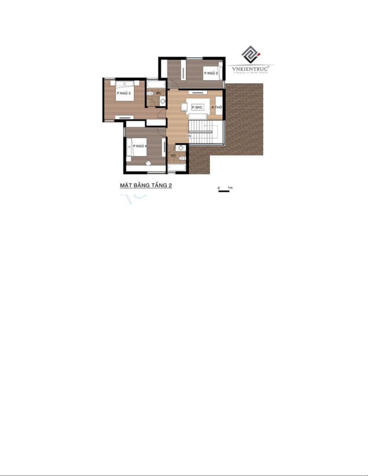 Tầng 2 bao gồm 3 phòng ngủ, 2 phòng vệ sinh và 1 phòng SHC + gian thờ.