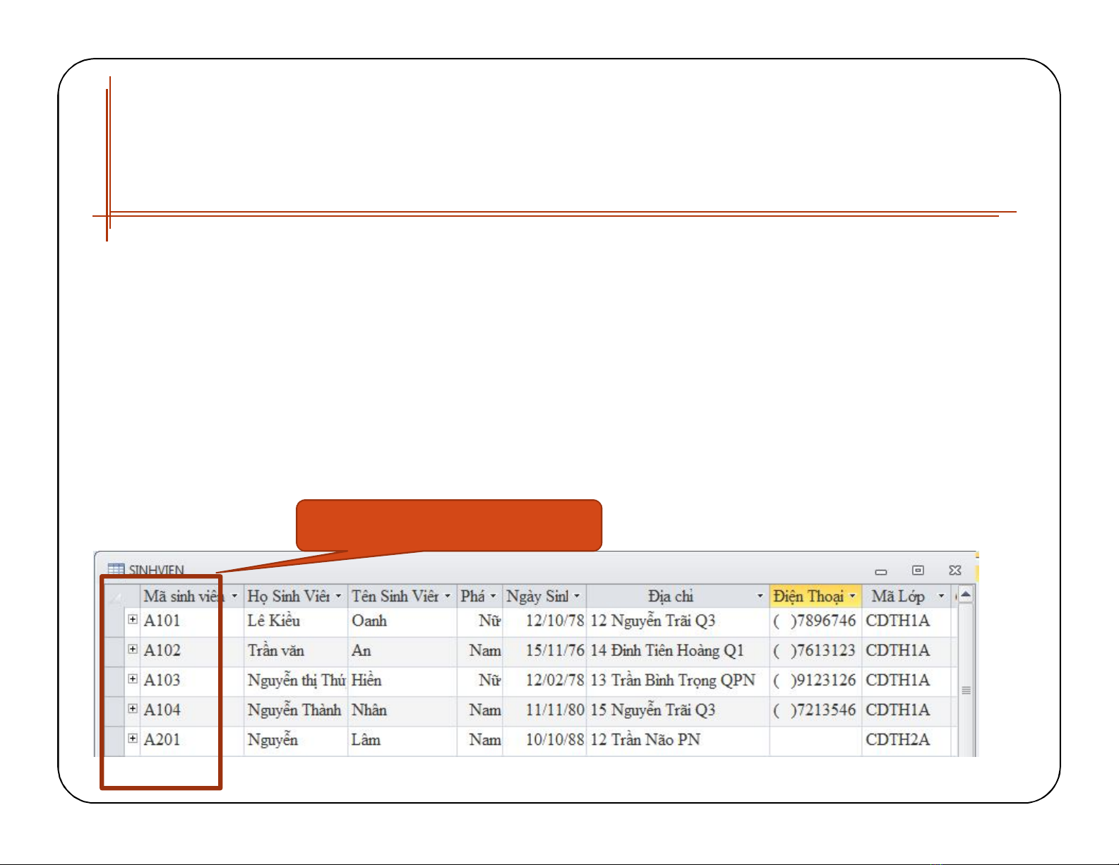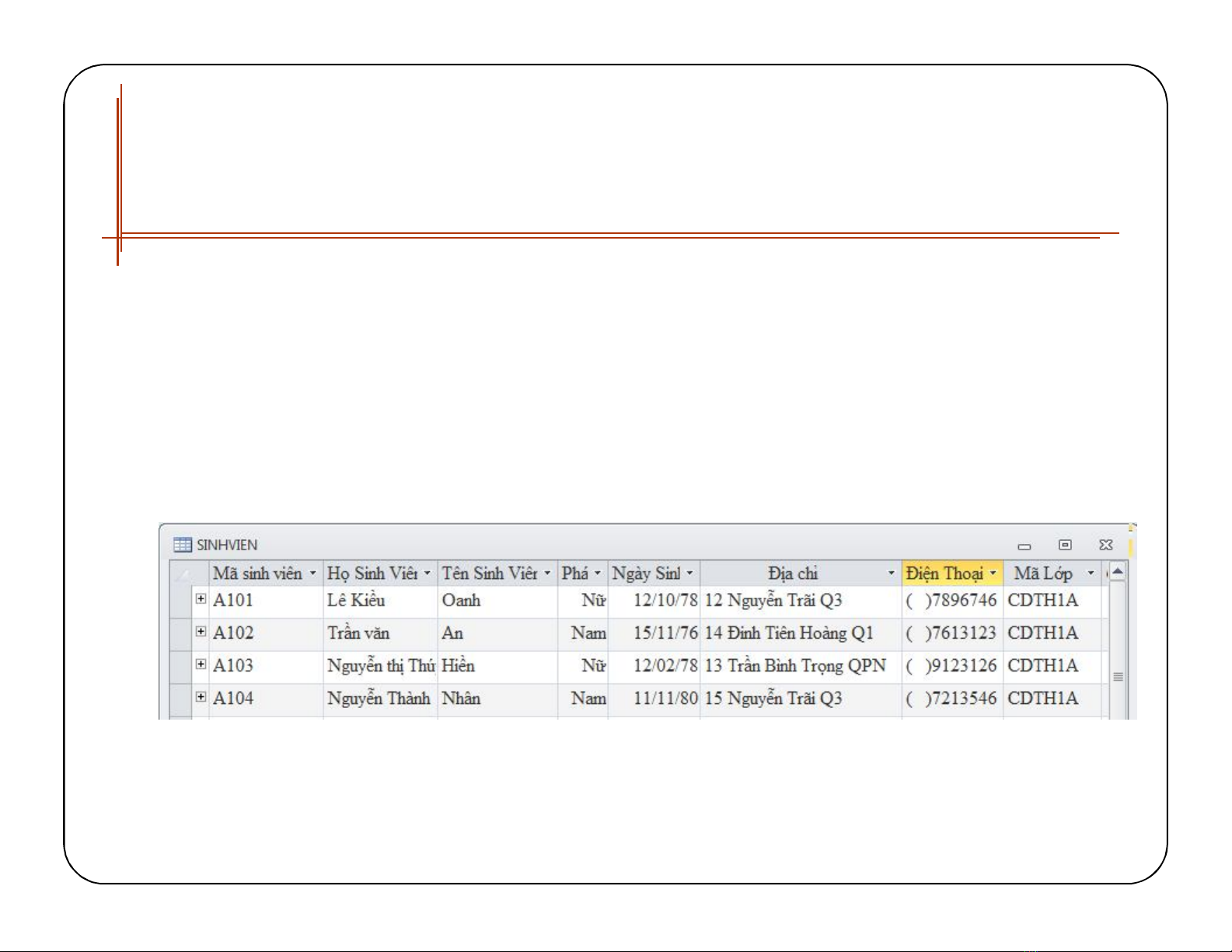 Một cơsởdữliệu Access bao gồm tập hợp các