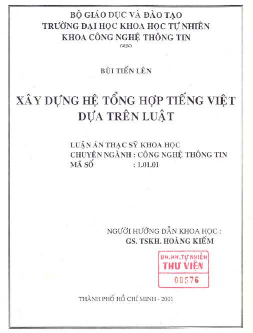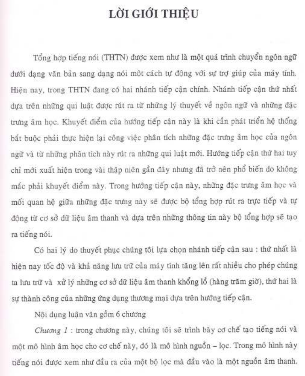 Luận văn Thạc sĩ Công nghệ thông tin: Xây dựng hệ thống tổng hợp tiếng Việt dựa trên luật của Bùi Tiến Lên gồm 6 chương. Chương 1: Mô hình âm học cho tiếng nói và ngữ âm tiếng Việt. Chương 2: Các phương pháp phân tích tham số tiếng nói. Chương 3: tách các đặc trưng của tiếng nói. Chương 4: Tổng hợp tiếng nói. Chương 5: Thuật toán TD-PSOLA. Chương 6: Cài đặt ứng dụng và đánh giá.