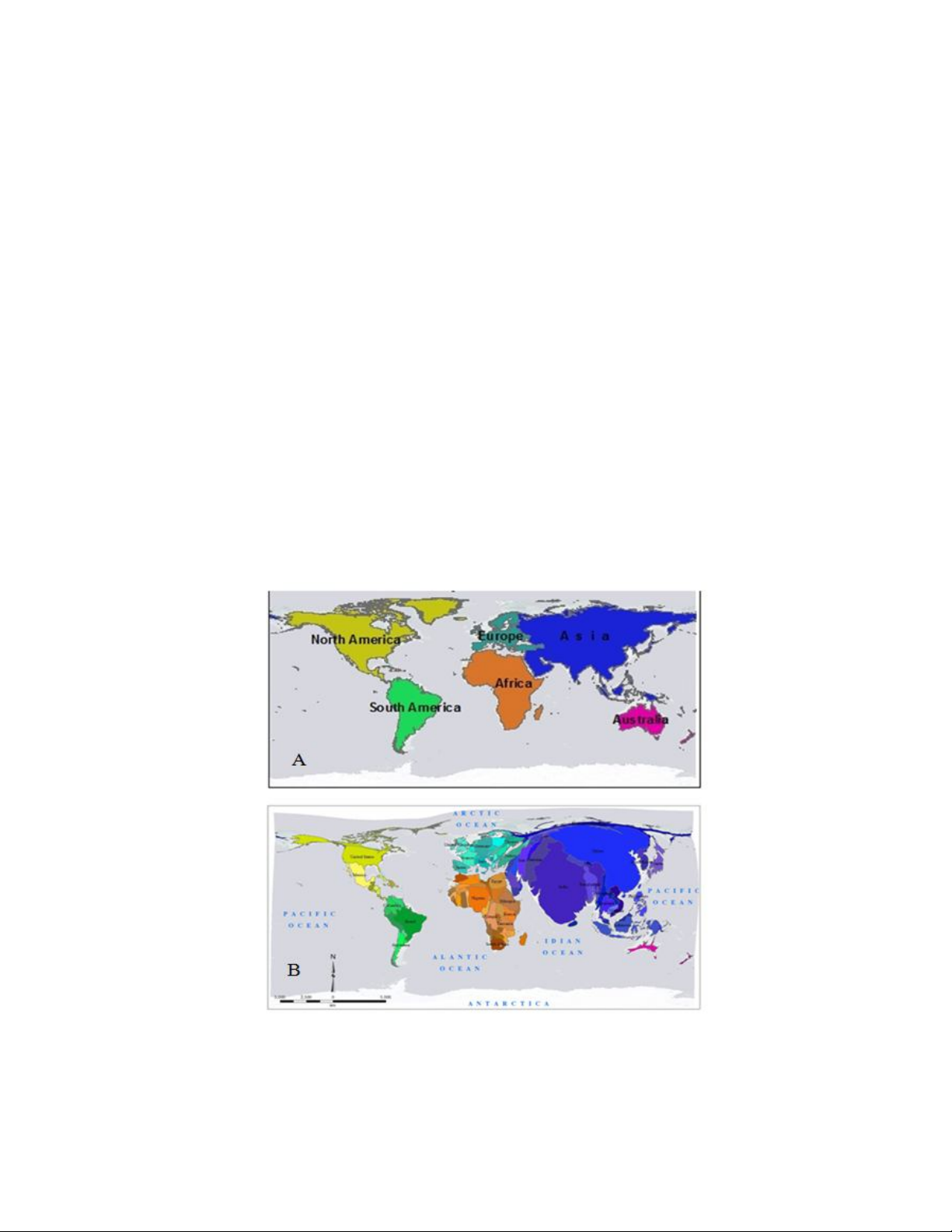 Hình 1. Bản đồ truyền thống và một dạng cartograms