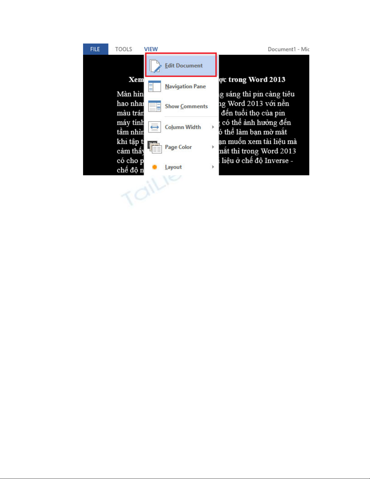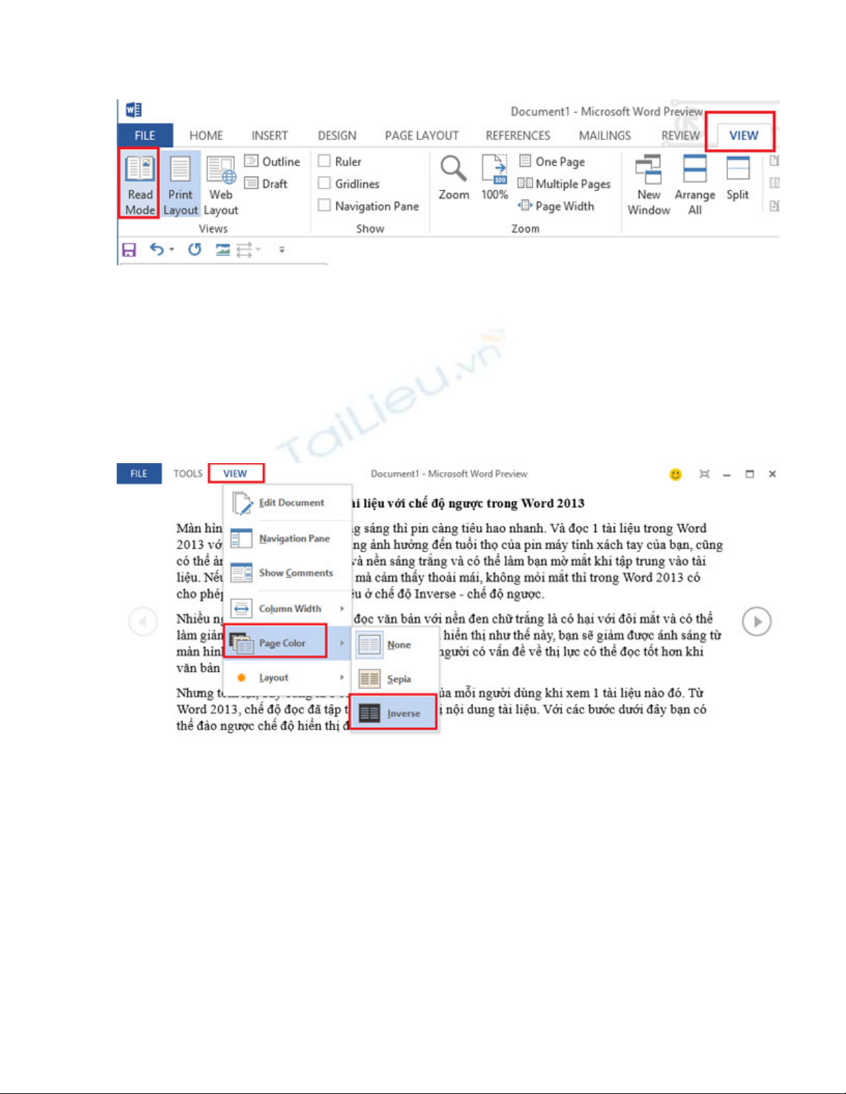 2013 có cho phép người dùng xem tài liệu ở chế độ Inverse - chế độ ngược.