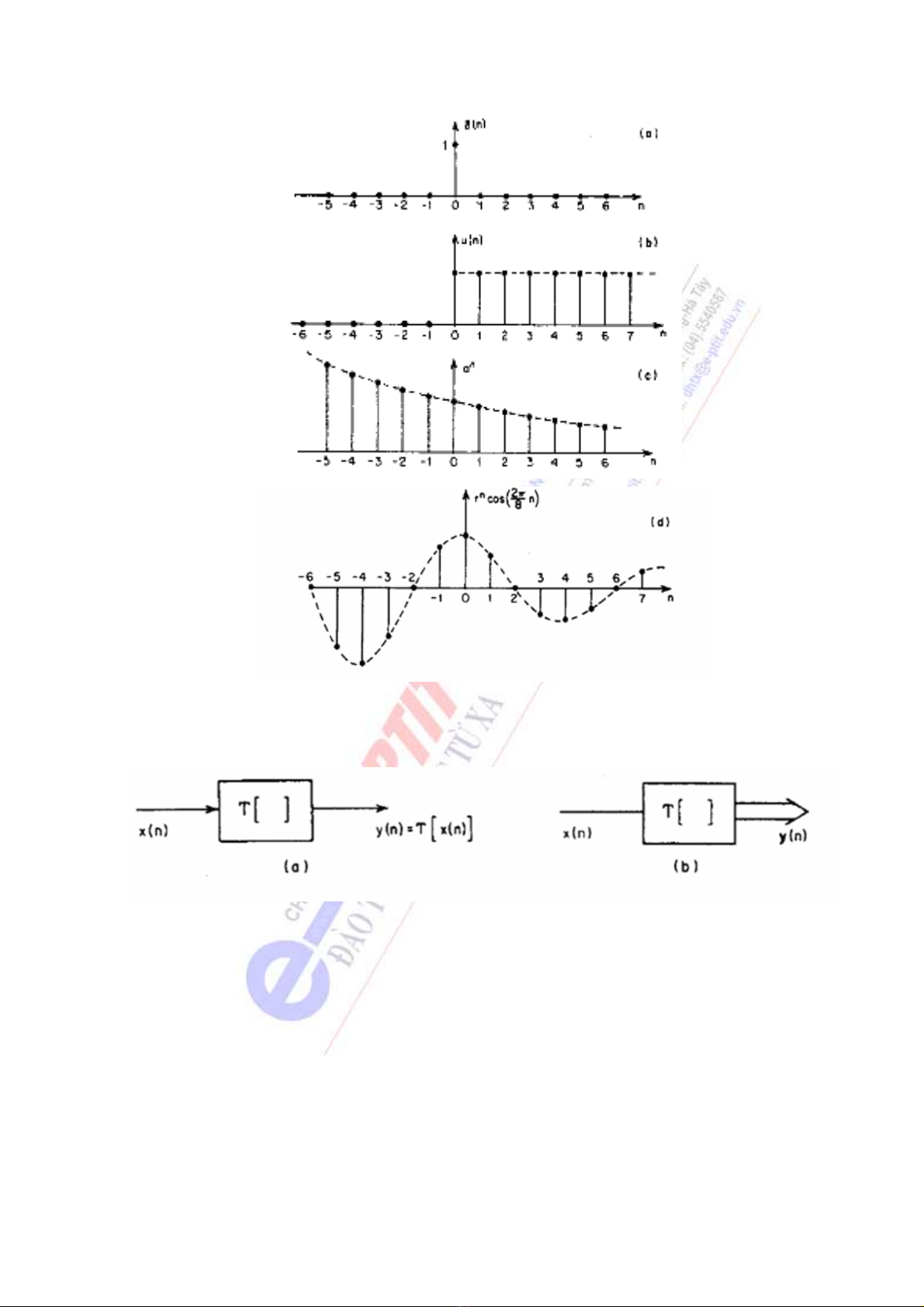 Hình 1.30 (a) Lấy mẫu đơn vị, (b) đơn vị bước, (c) hàm mũ thực và (d) hàm sin suy giảm