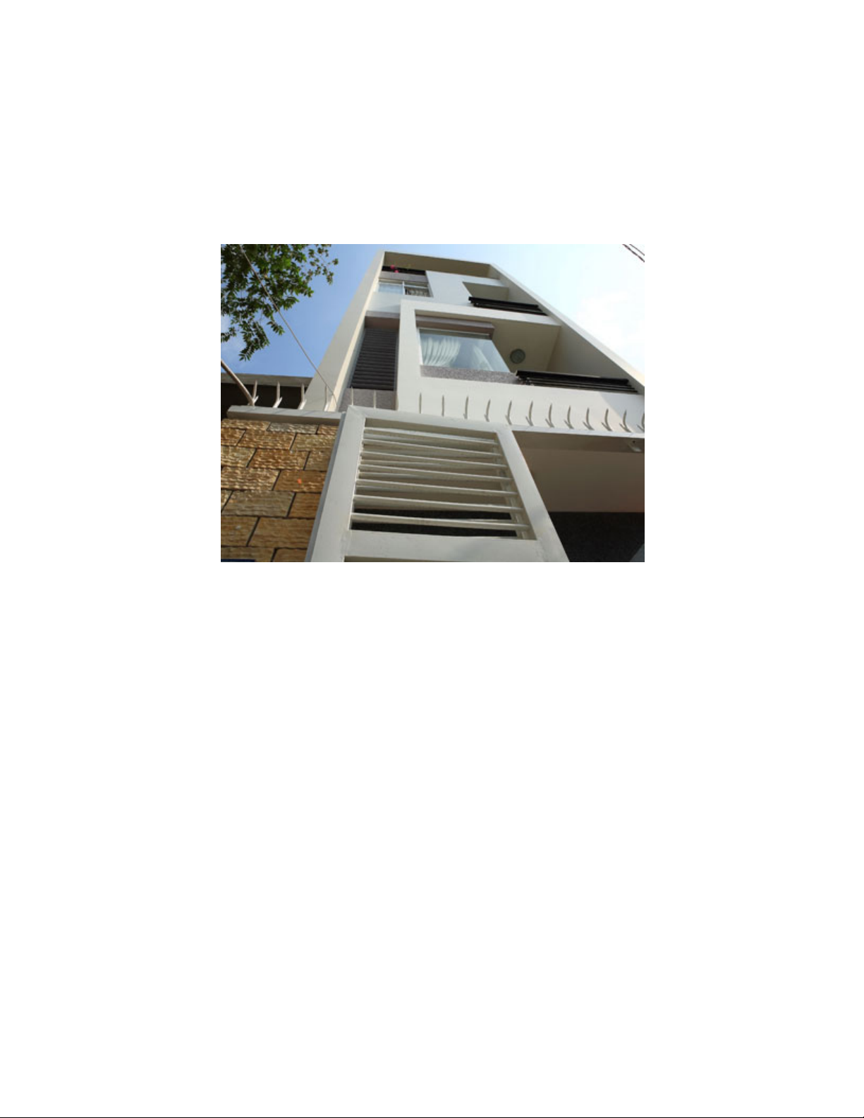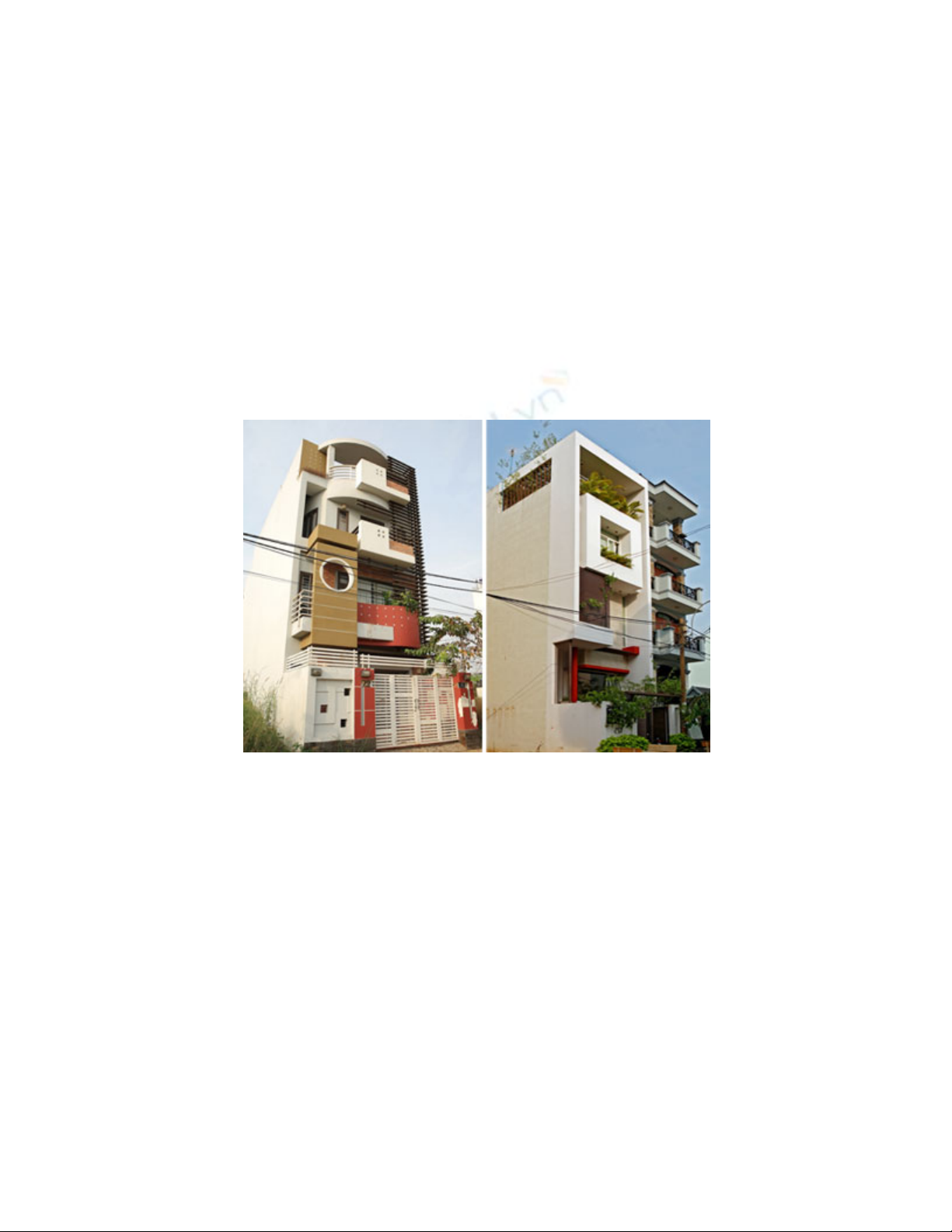ngang hẹp, vươn lên theo chiều cao, nên việc bố trí hình khối, màu sắc ngoại thất