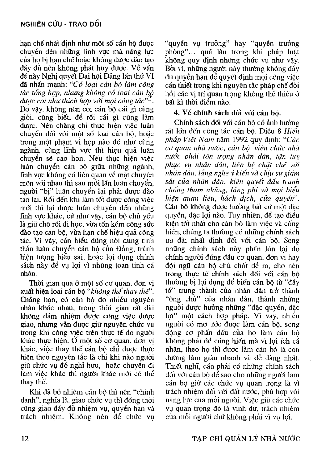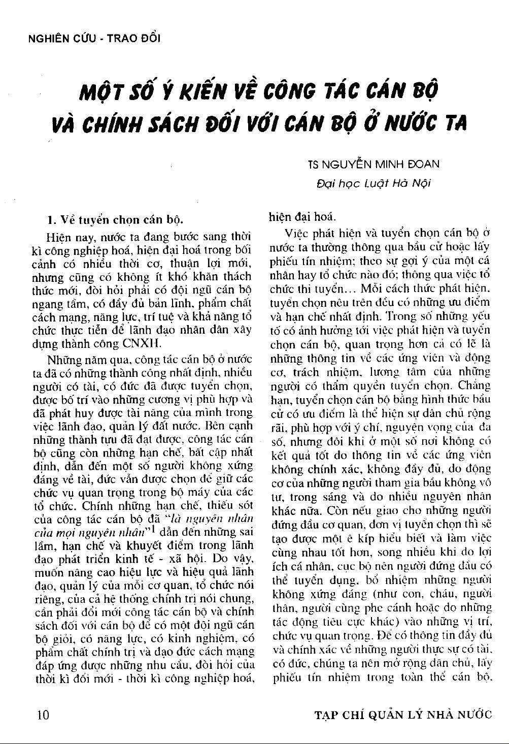 Một số ý kiến về công tác cán bộ và chính sách đối với cán bộ ở nước ta - TS. Nguyễn Minh Đoan